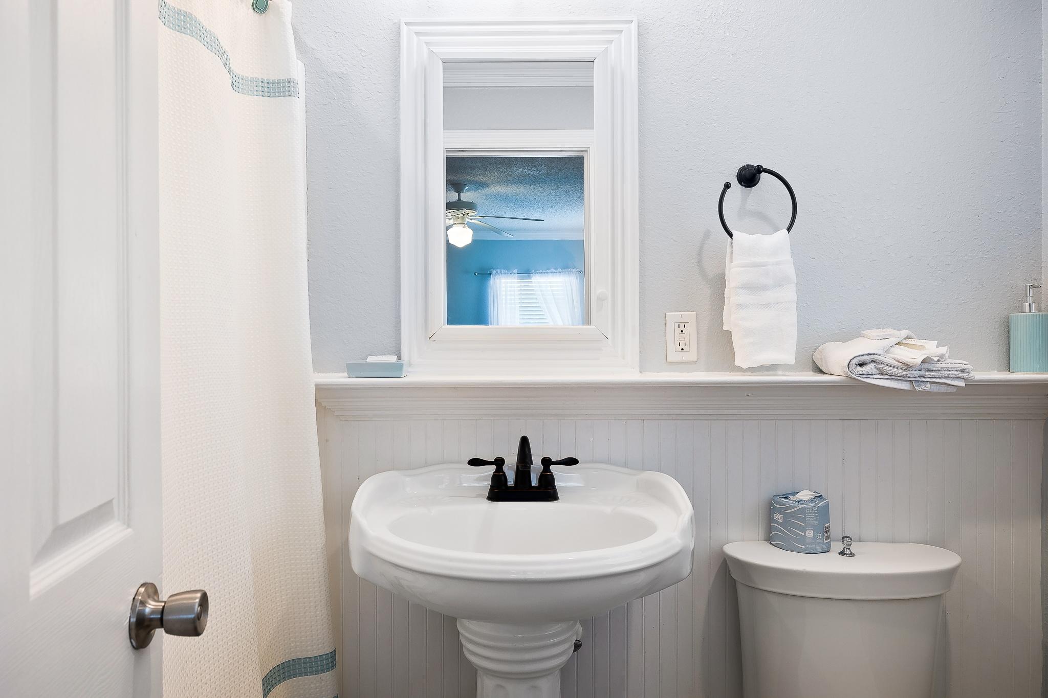 bathtub/shower. This guest bedroom also has access to the back patio area
