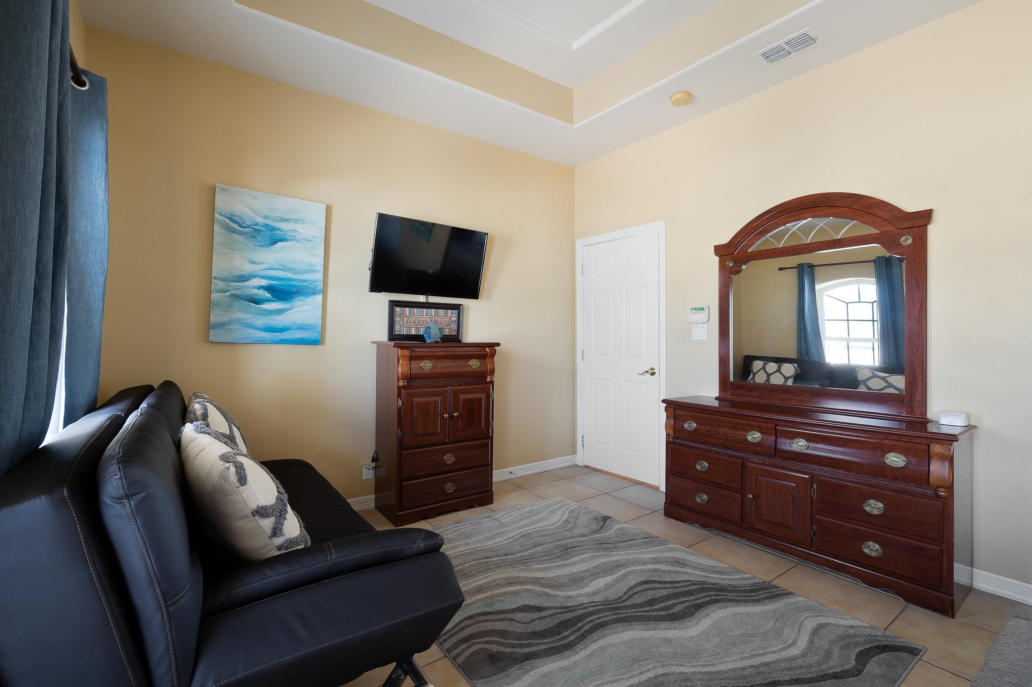 a sleeper sofa for extra sleeping accommodations.