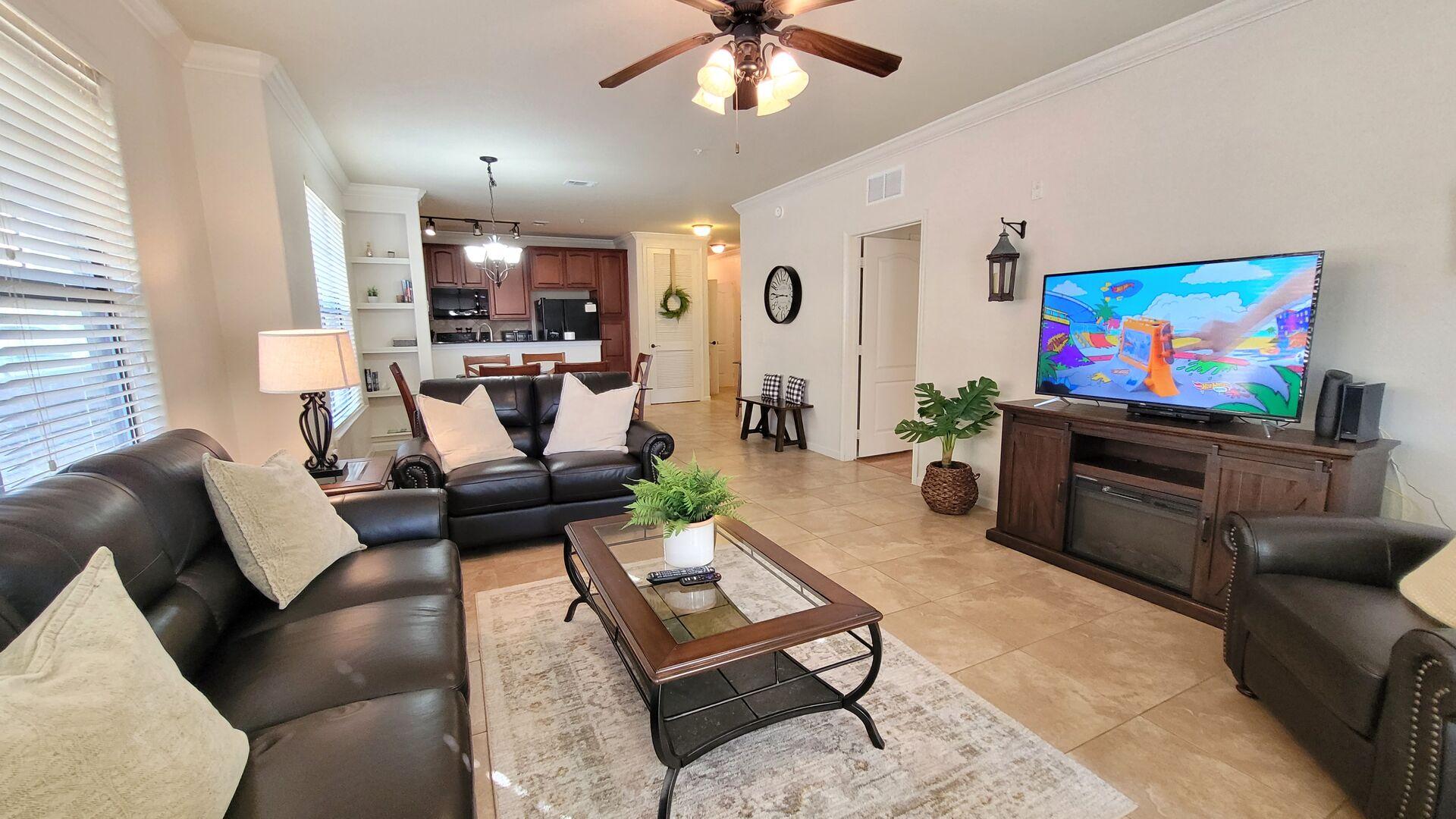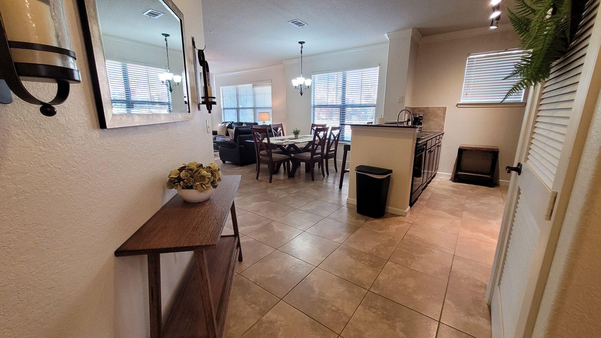 After a fun day at the parks, relax in the cozy living room and enjoy watching your favorite shows on the flat screen Smart TV with cable service provided or surf the high speed internet. The condo was recently remodeled and features NO CARPET!