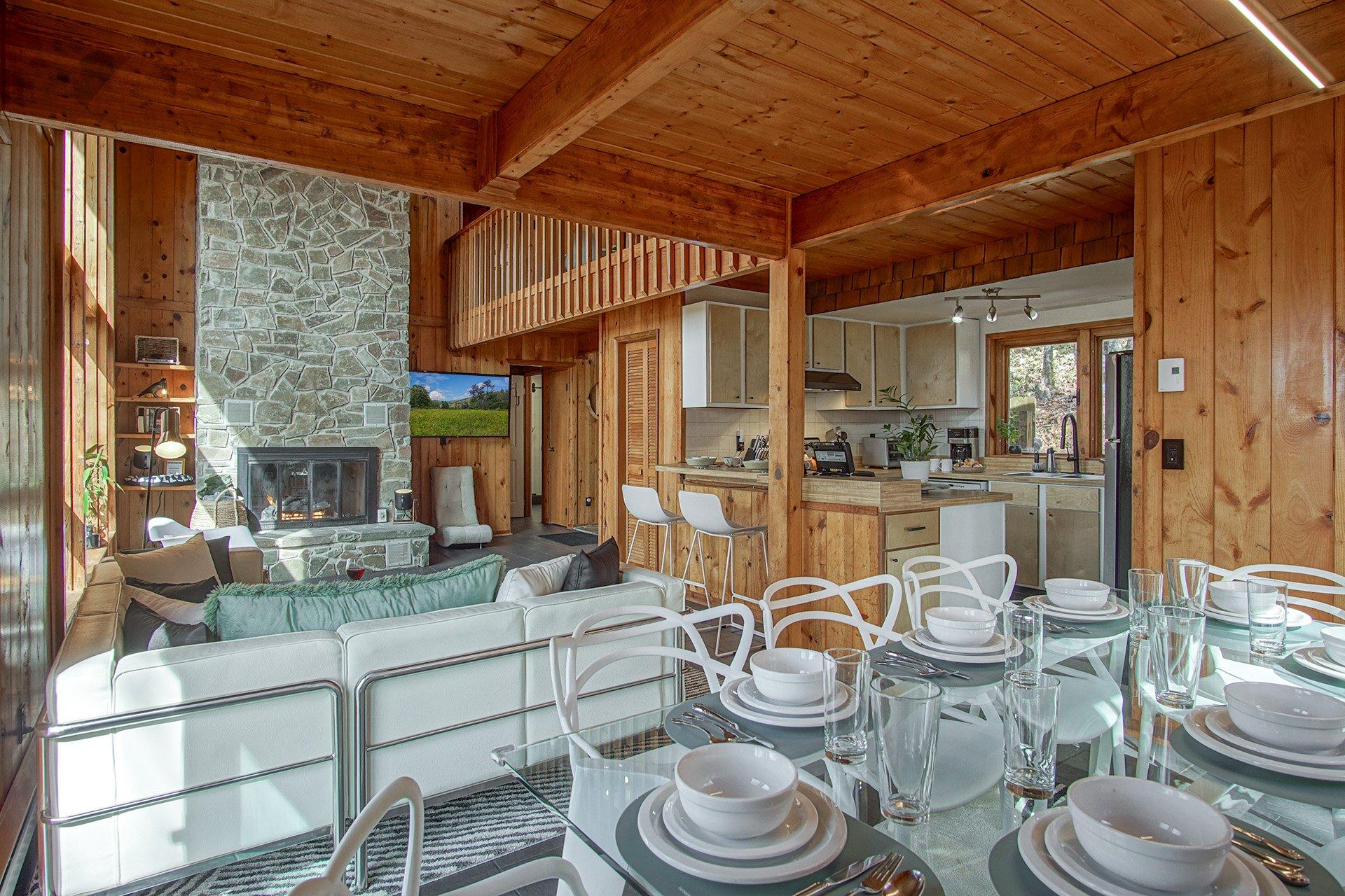 N WESTRIDGE RD 222-7 HOUSE- Alpenglow: 3 BEDROOM, 2 BATHS- BEDDING: Master BR King, BR2- Q, BR3 -2 Twins. Step into "Alpenglow" a charming two-story retreat nestled on Snowshoe's enchanting Westridge Road. The name Alpenglow captures the magical moment when the setting sun paints the mountains with a warm, rosy hue to make it a place where cherished memories are made. Decorated with a tile floor, a two-story stone fireplace, and beautiful woodwork. The unit has a washer/dryer and 2 walk-in showers.