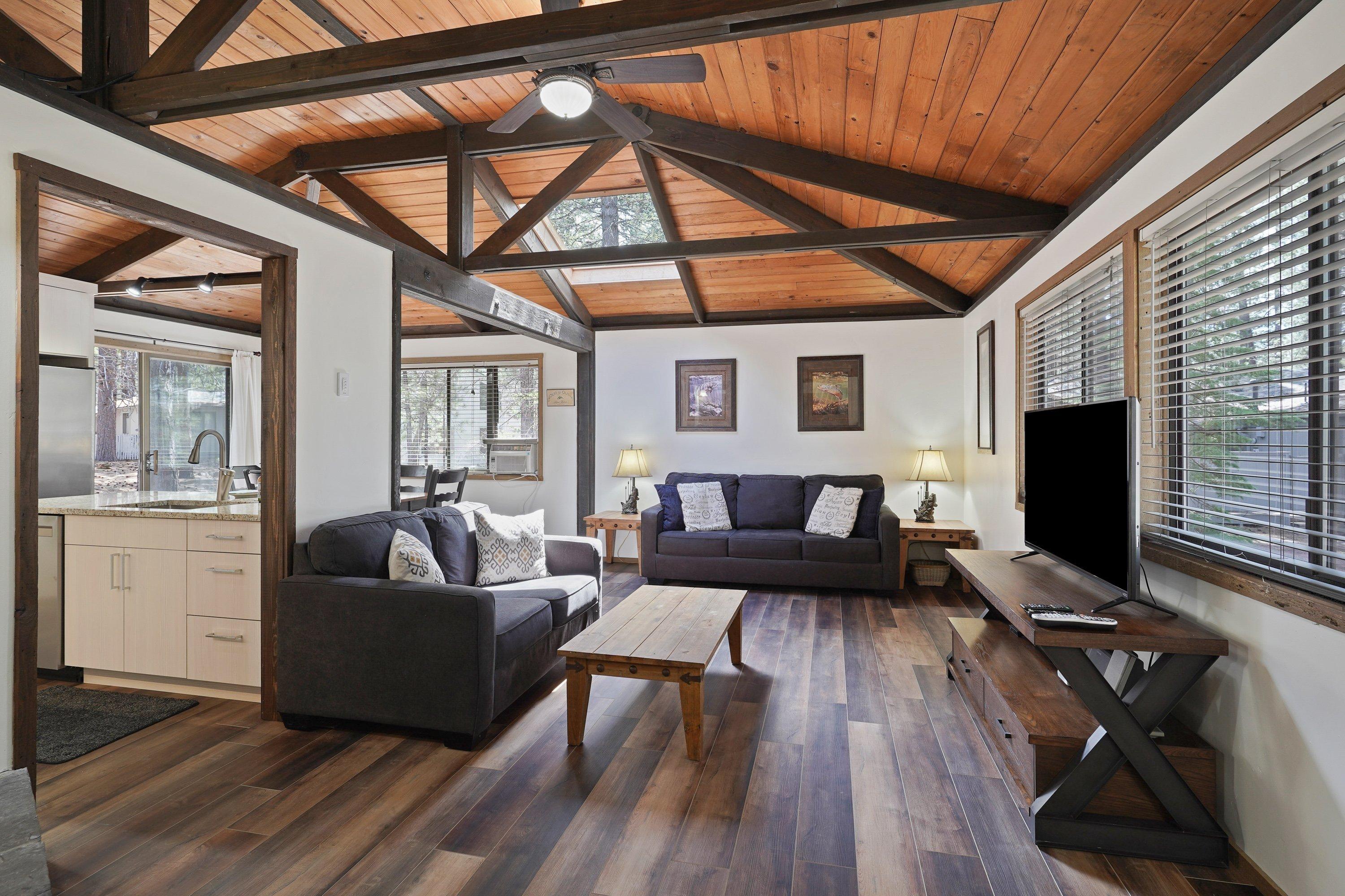 wonderfully with the vaulted ceilings that include rustic exposed beam