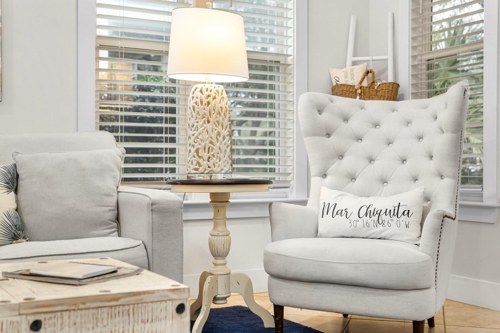 Mar Chiquita by Panhandle Getaways is a charming Seacrest Beach bungalow with a private saltwater pool, deeded beach access, golf cart, and bikes. Bright, coastal interiors and modern amenities make this the perfect spot for families to relax and enjoy 30A.