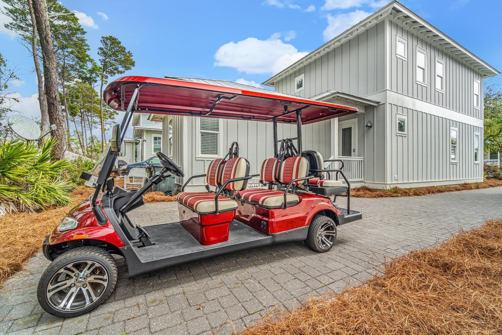 Sails and Trails by Panhandle Getaways is a pet-friendly Seagrove Beach home in Greenway Park. With a 6-seater golf cart, bikes, and nature trails nearby, it’s perfect for families and groups.