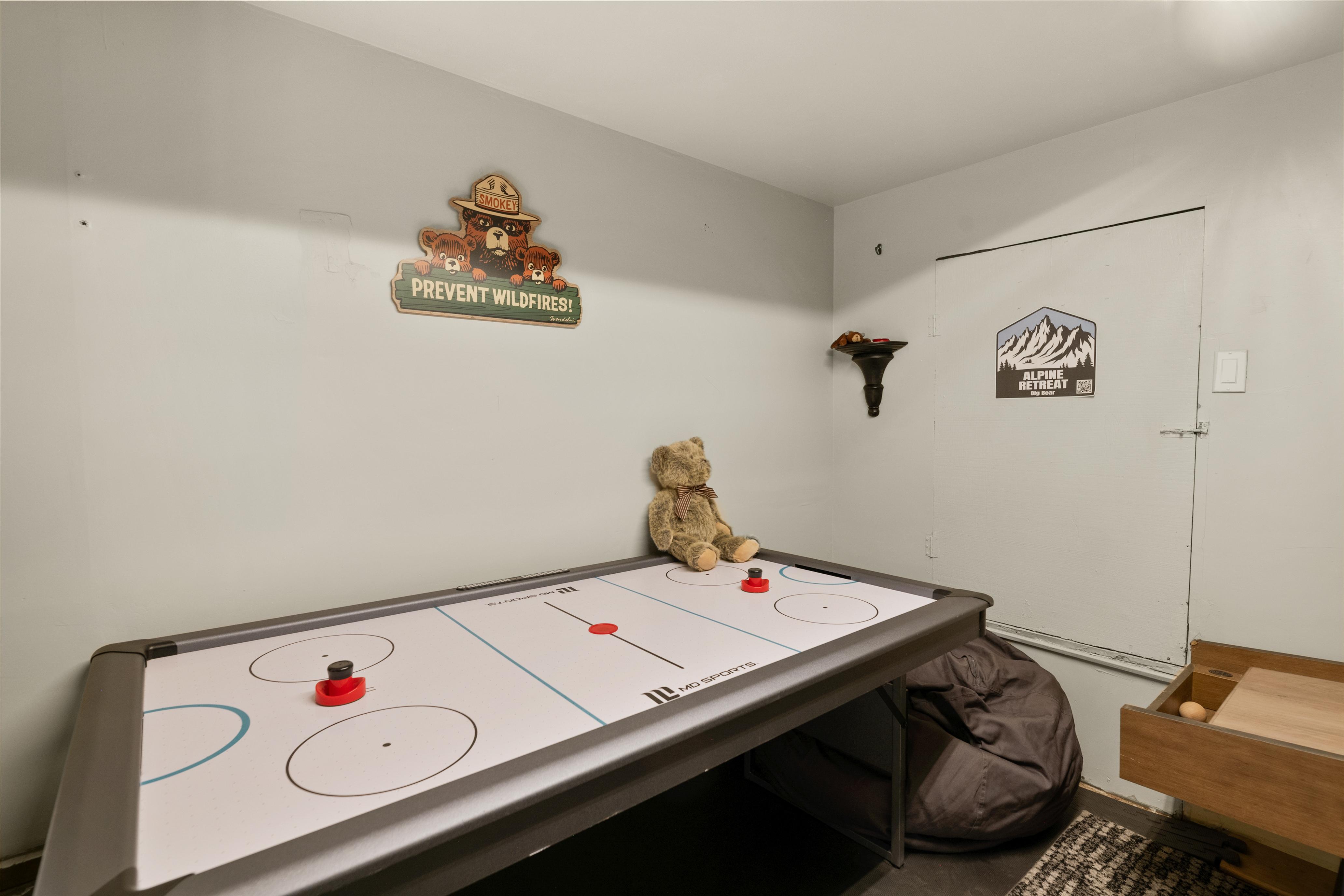 AMENITIES - Basement level gaming space with darts. Smart TVs, streaming apps with fast WiFi, board games, and card games. Relax near the cozy wood burning stove fireplace in winter and fall and stay cool under large ceiling fans in both bedrooms and the living room during the warmer months. Laundry area with side-by-side washer/dryer.