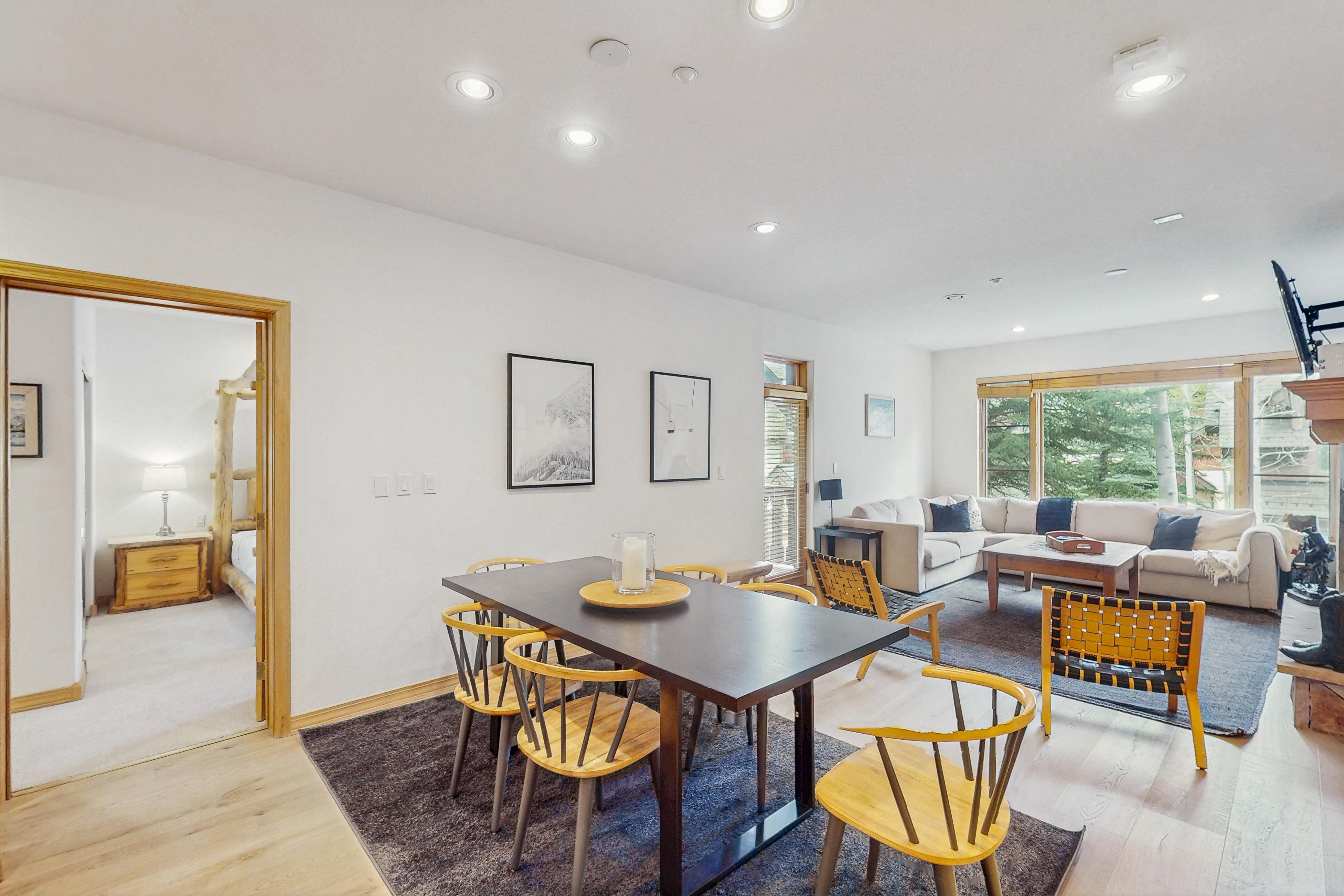 The slopes of Beaver Creek Resort are mere steps from this two-bedroom condo in Arrowhead Village, with the Arrow Bahn Express 17 Lift practically outside your door.