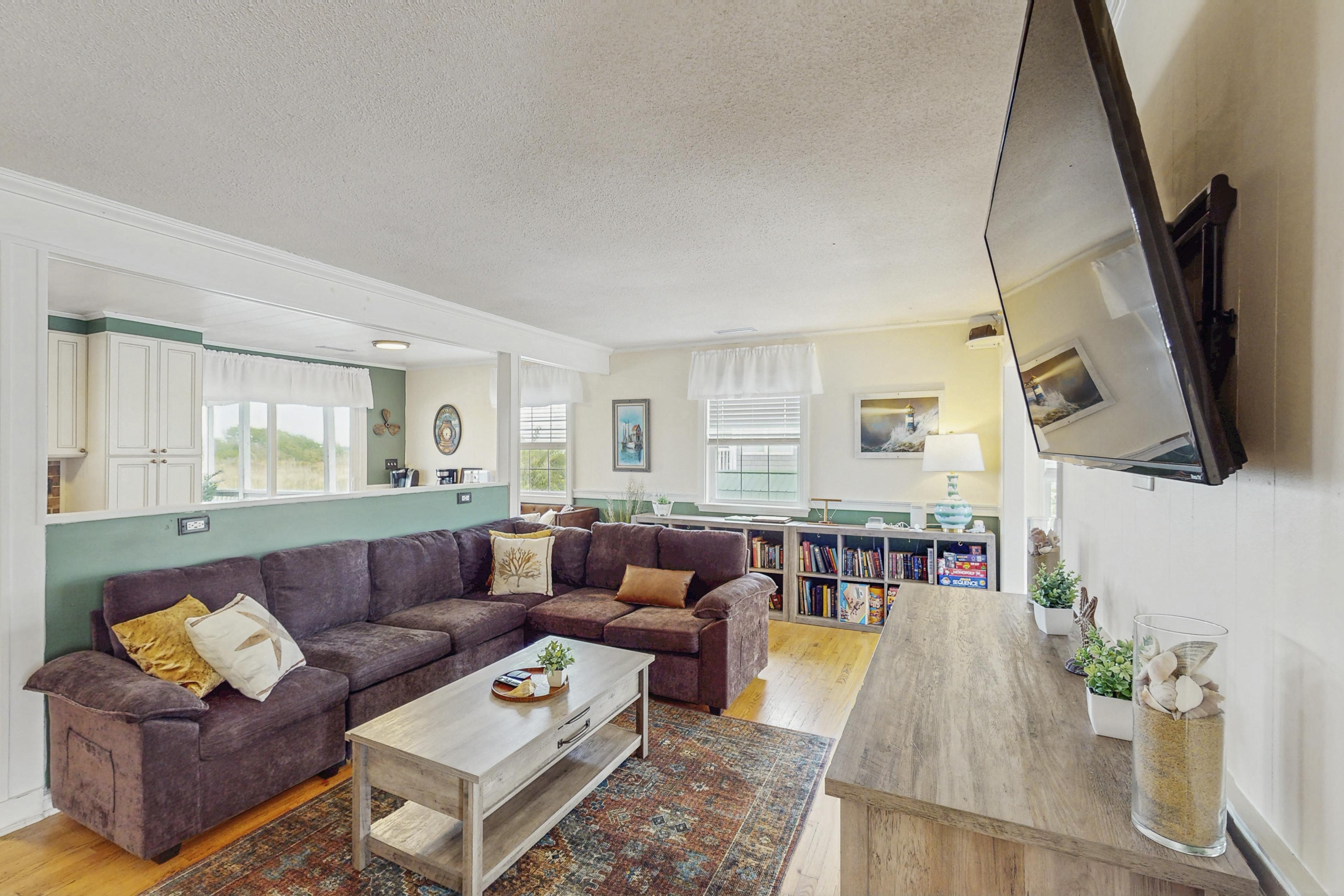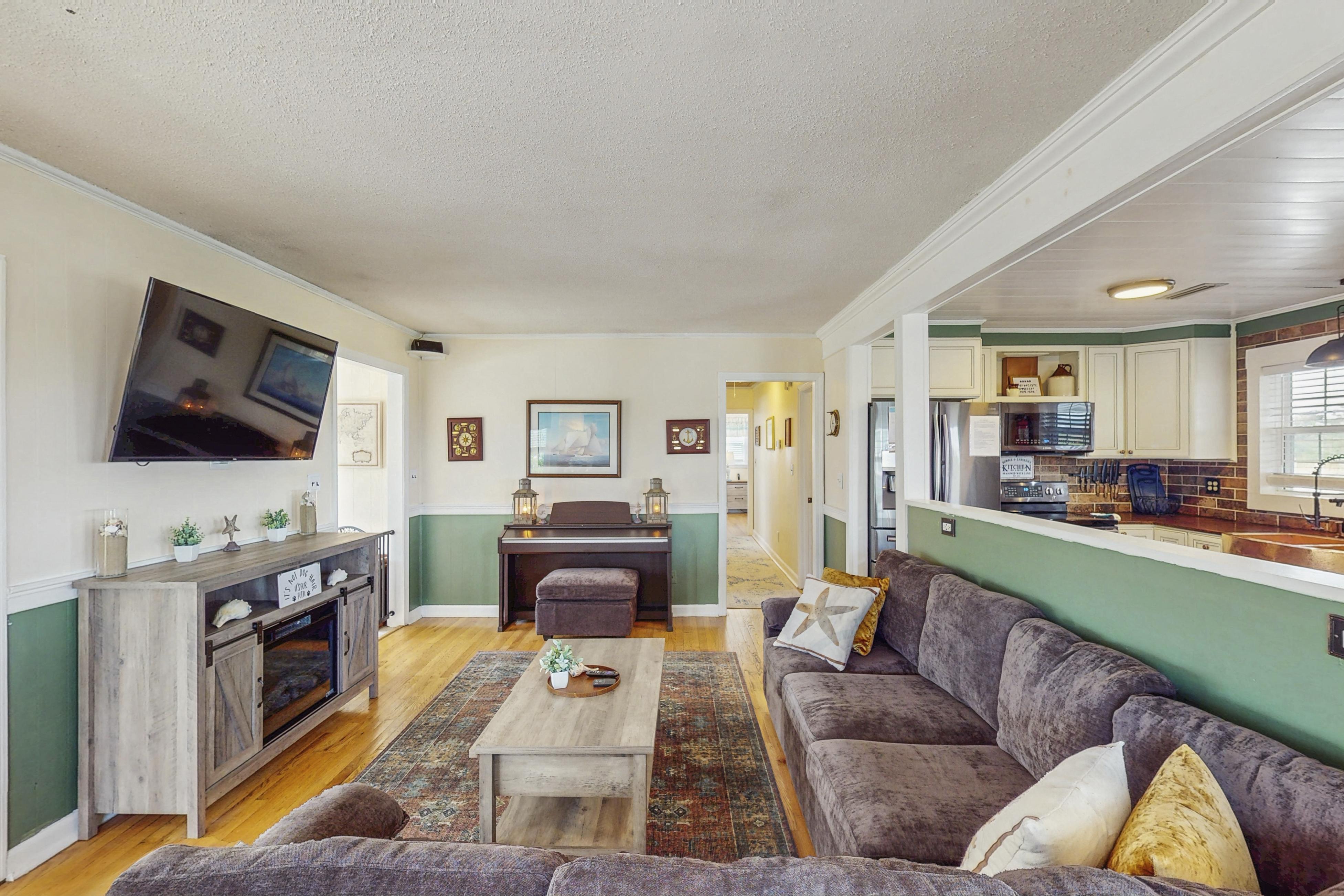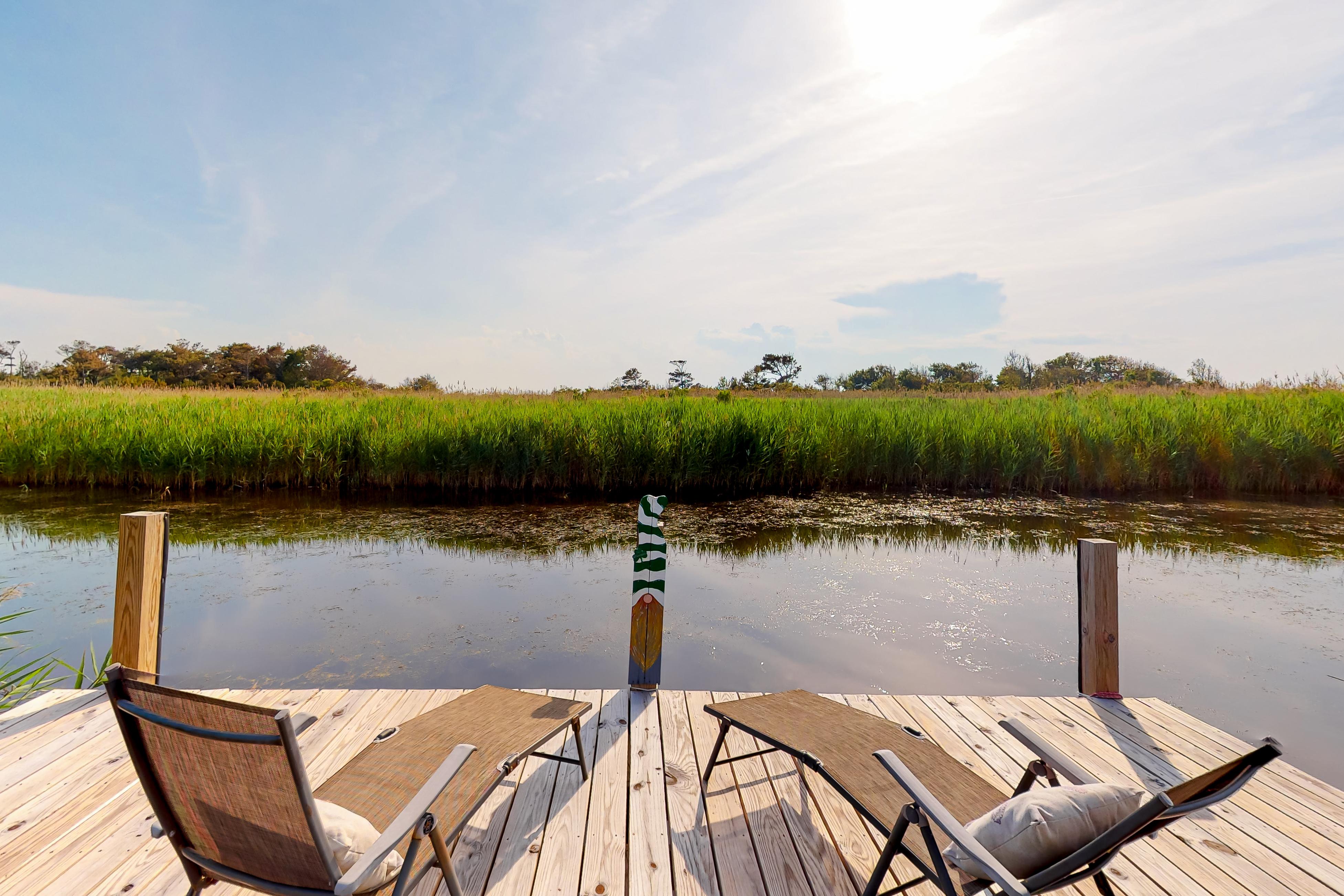 This charming home on the bay overlooks Back Bay National Wildlife Refuge, so bring your binoculars, because you can expect abundant wildlife views and bird watching off the back deck. This family- and dog-friendly getaway, located just one street away from the beach, offers a private oasis feeling while still being close to central Virginia Beach, just 15 miles north. Little Island Park, with public parking, a fishing pier, playground, picnic areas, tennis courts, and a life-guarded beach is just a few minutes away, but with such a lovely setting and so much to do at home, you may not venture far.