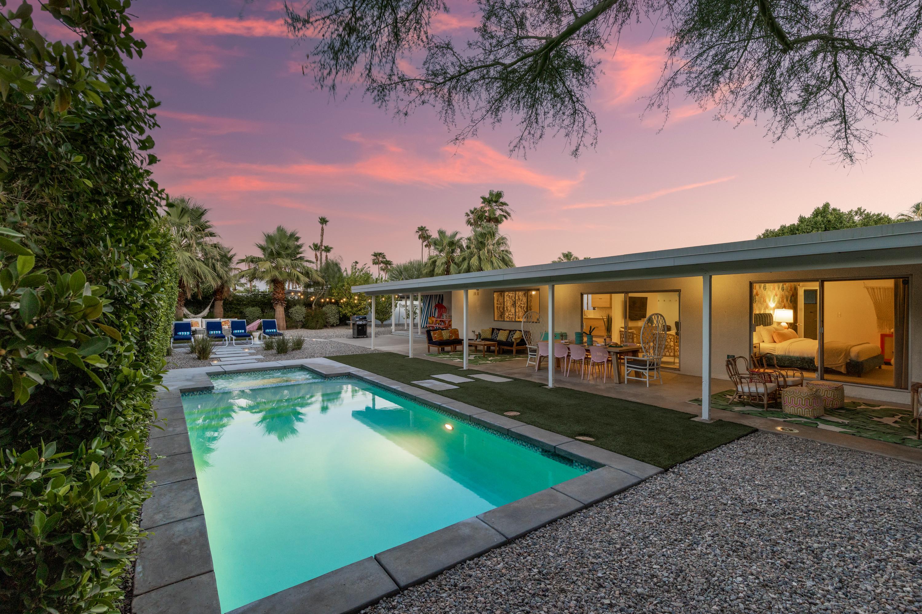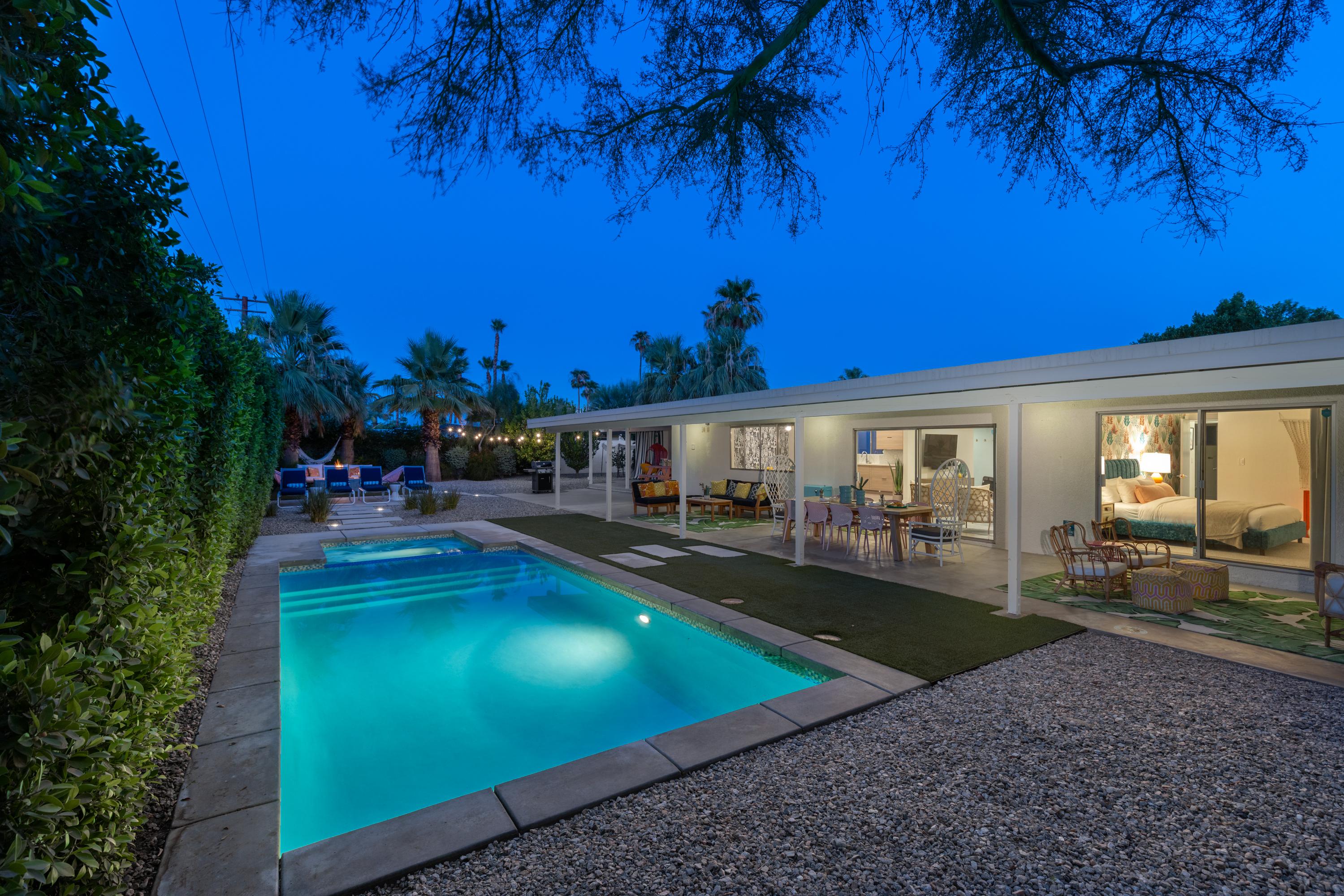 Gorgeous mid mod home where no detail has been overlooked. The owners of this property worked w/ award-winning designer, Christopher Kennedy (of Modernism Week Fame) to create this upscale, resort-like home that’s just dripping with style & fun with social media moments around every corner! The spacious free-flowing floor plan provides plenty of space for your entire group to gather & enjoy. Spectacular walls of glass blur the lines between indoor-outdoor living in true Palm Springs style.