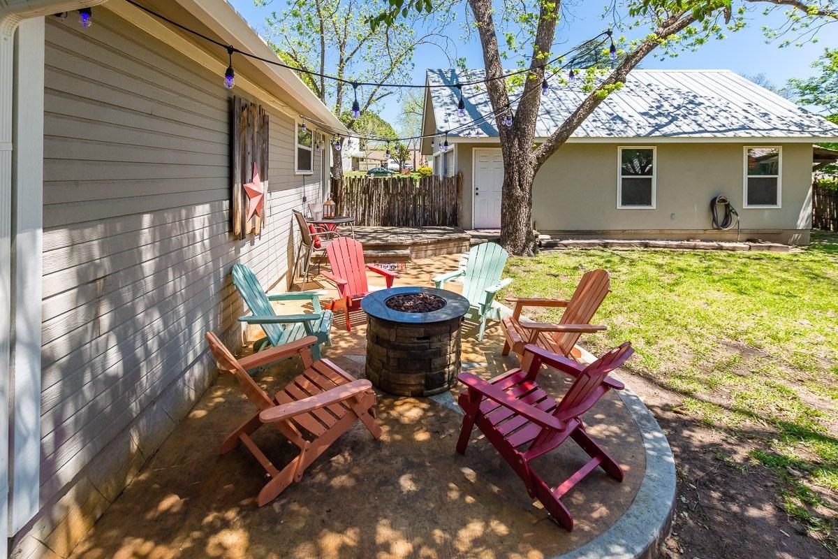 families can enjoy the fire pit in the fenced off backyard or enjoy a meal in