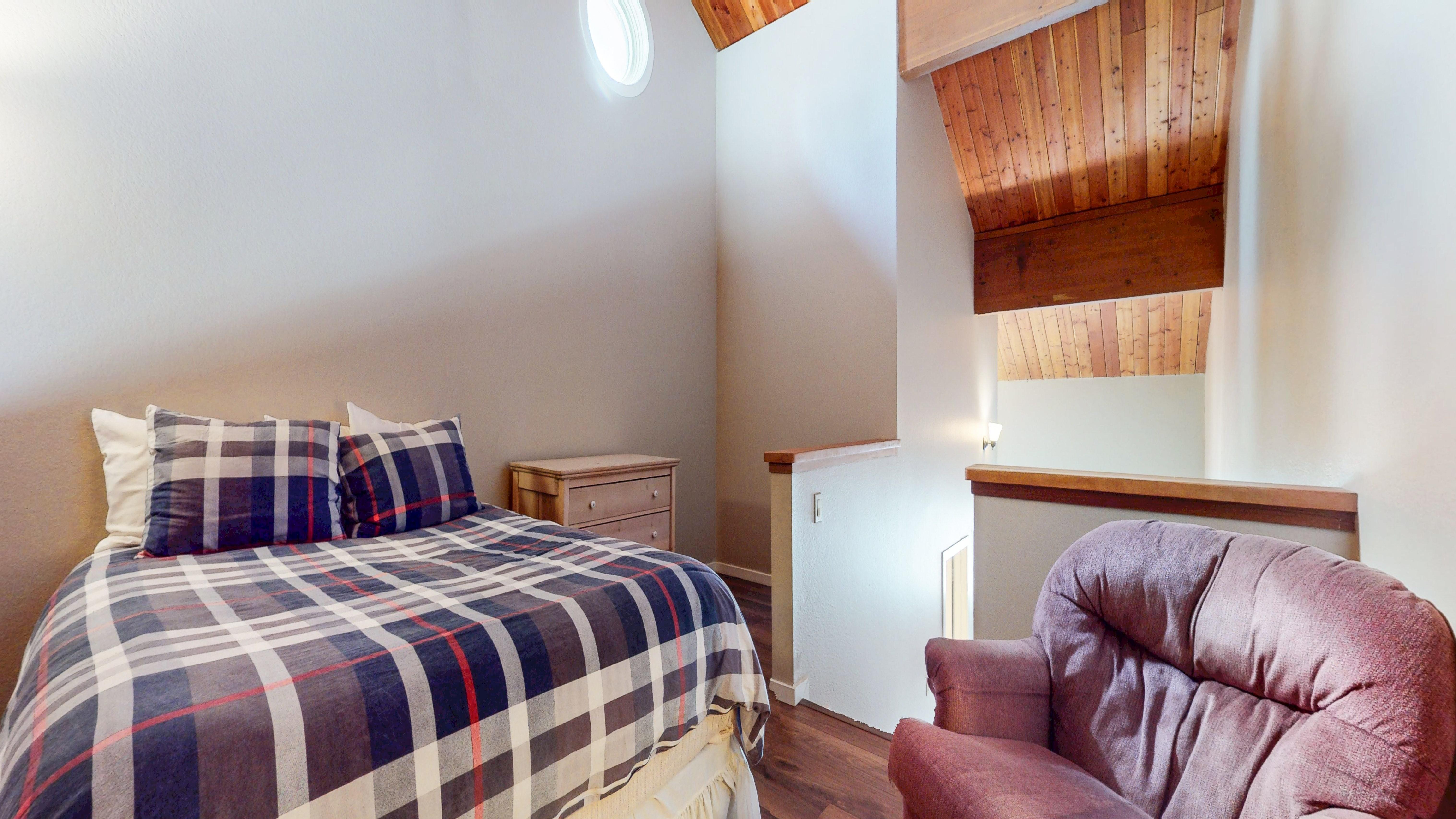 bedroom has a Queen bed. Third bedroom features a bunk with 2 Twins, as well