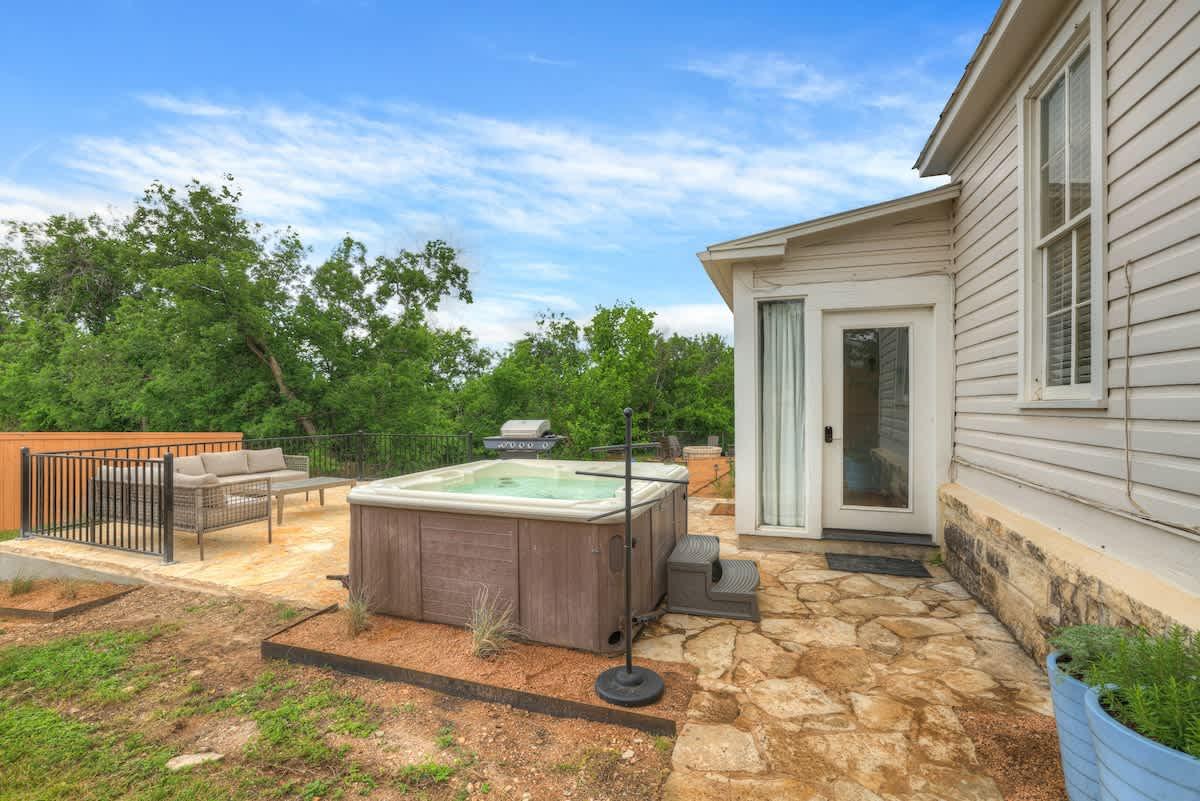 Nestled in Fredericksburg, this contemporary haven with historic charm offers modern amenities, 3 full bathrooms, 3 bedrooms, and a bonus sunroom for ample space. Enjoy wine on the porch, relax by the fire pit, unwind in the hot tub, and savor outdoor cooking with the charcoal grill in the fenced backyard. Your ultimate retreat awaits.