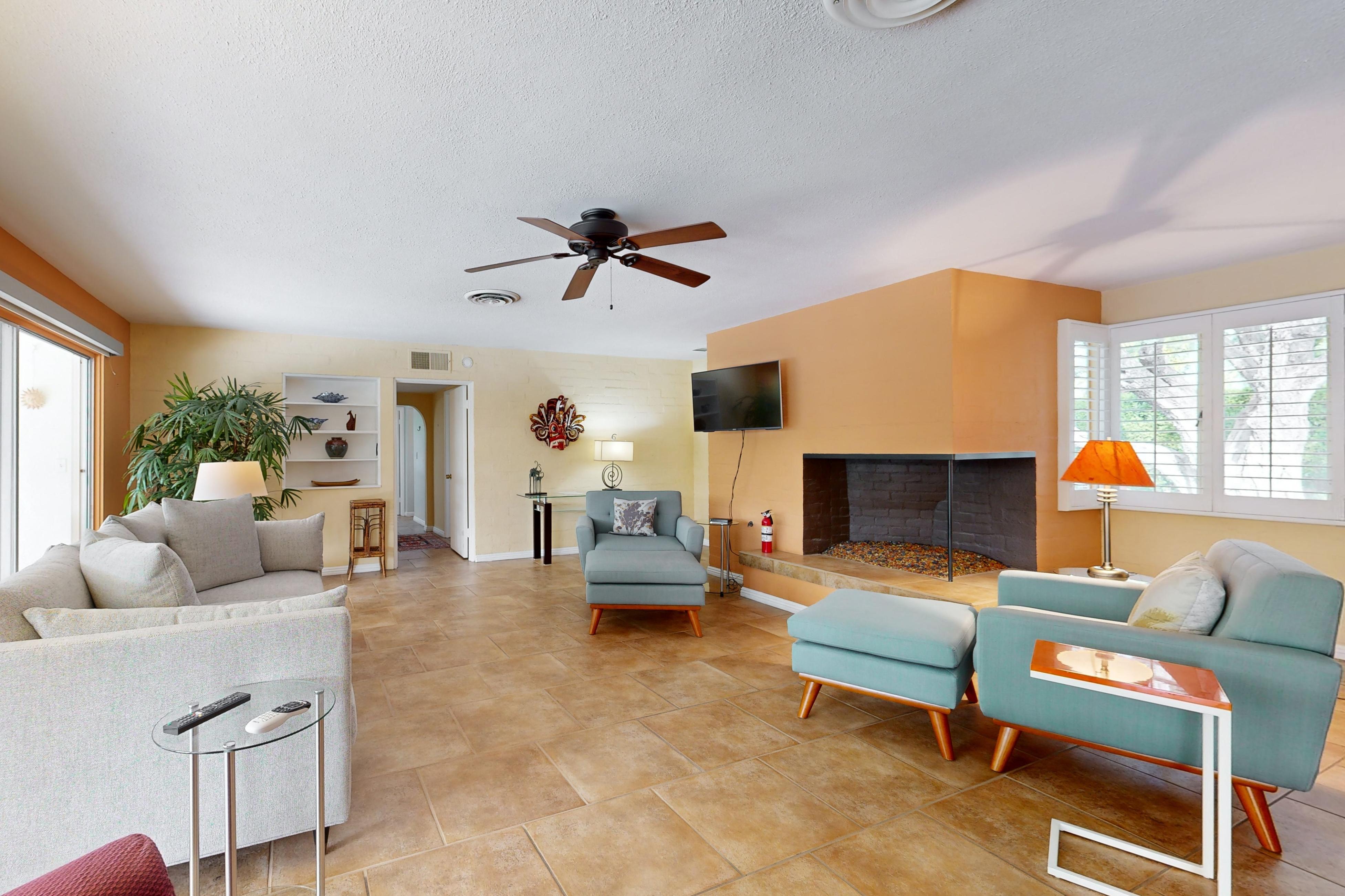 Tucked away on a tranquil street in Palm Springs, CA, this upgraded retreat offers total privacy and stunning desert views. Inside, youâll find a remodeled kitchen and bathrooms, newer flooring throughout, and an expanded master suite that provides three spacious bedrooms, perfect for a comfortable getaway.