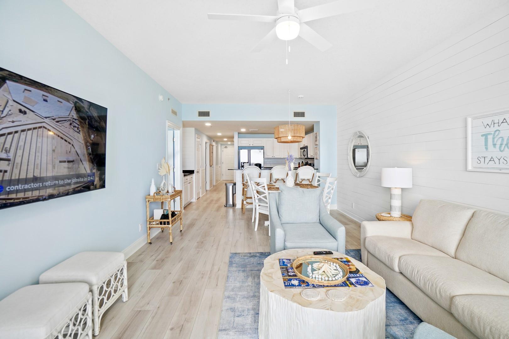 This one-of-a-kind condo features new luxury flooring, shiplap accents, recessed lighting, and built-in shelving at the wet bar. Both bathrooms include double vanities, and the master boasts a custom floor-to-ceiling tiled walk-in shower. The balcony offers turf flooring and captain’s chairs for unobstructed views — perfect for enjoying sunsets, fireworks, or morning coffee with a breeze.