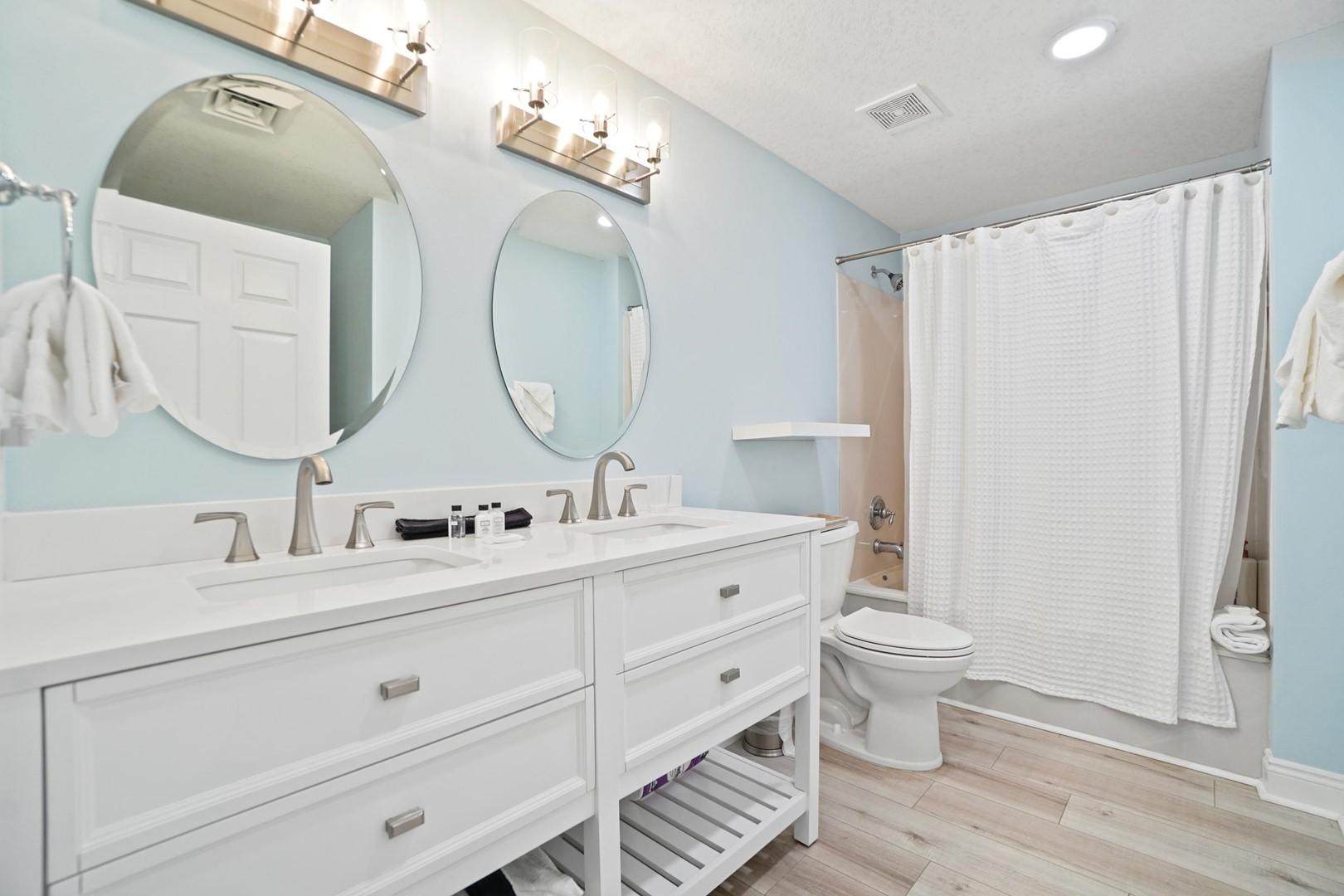 Bathroom 2 – spacious with double vanity & tub/shower combo