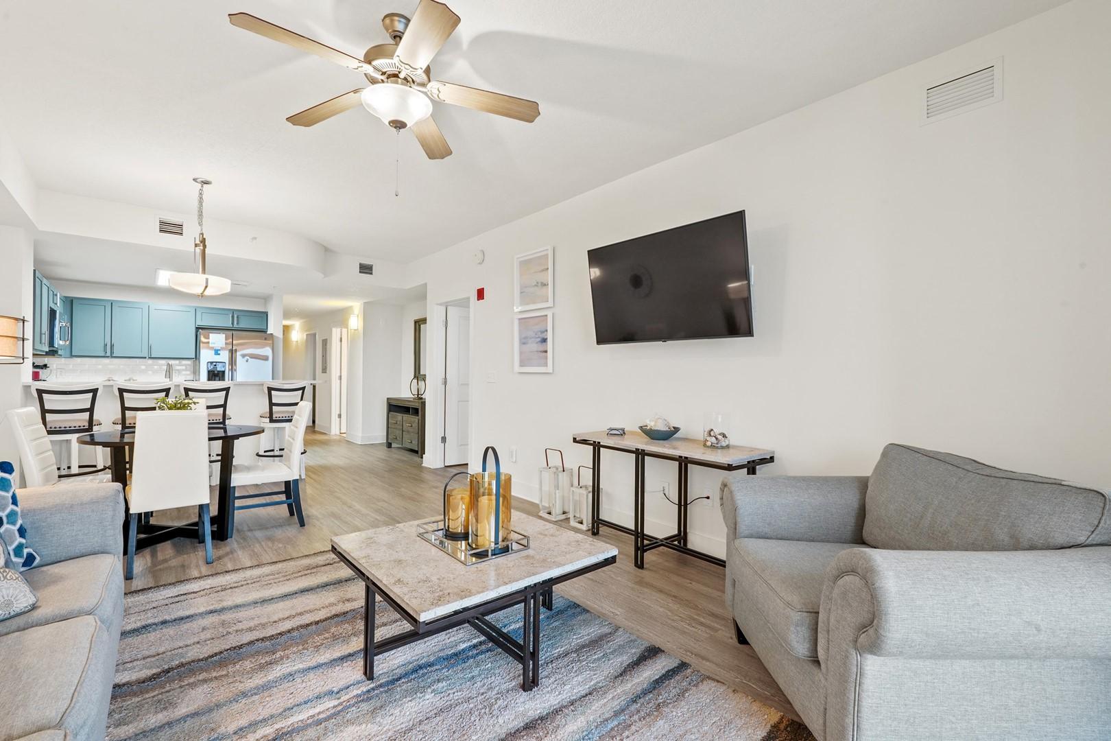 Living area – Gulf view, 55" TV, queen sleeper sofa
