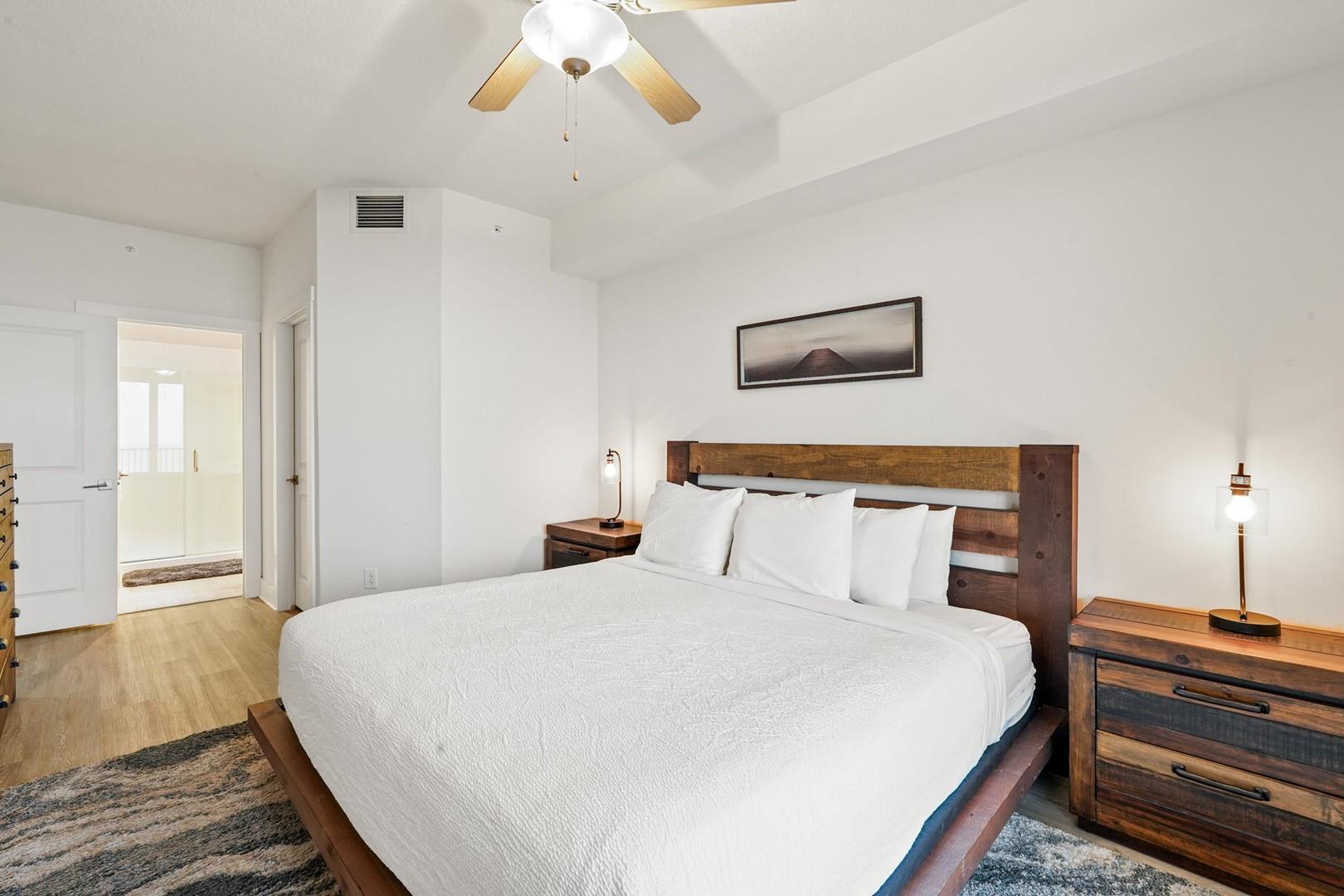 Bedroom 1 – king bed, 48" TV, en suite bathroom