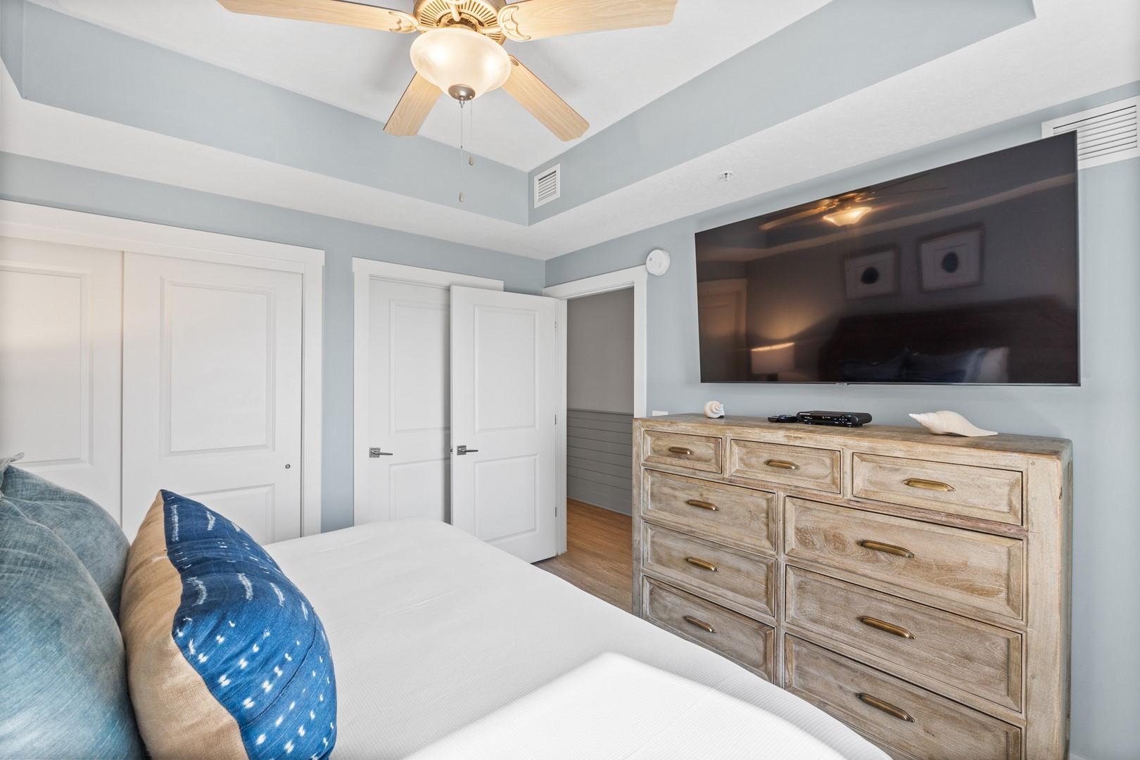 Bedroom 1 – king bed, 55" TV, en suite bathroom