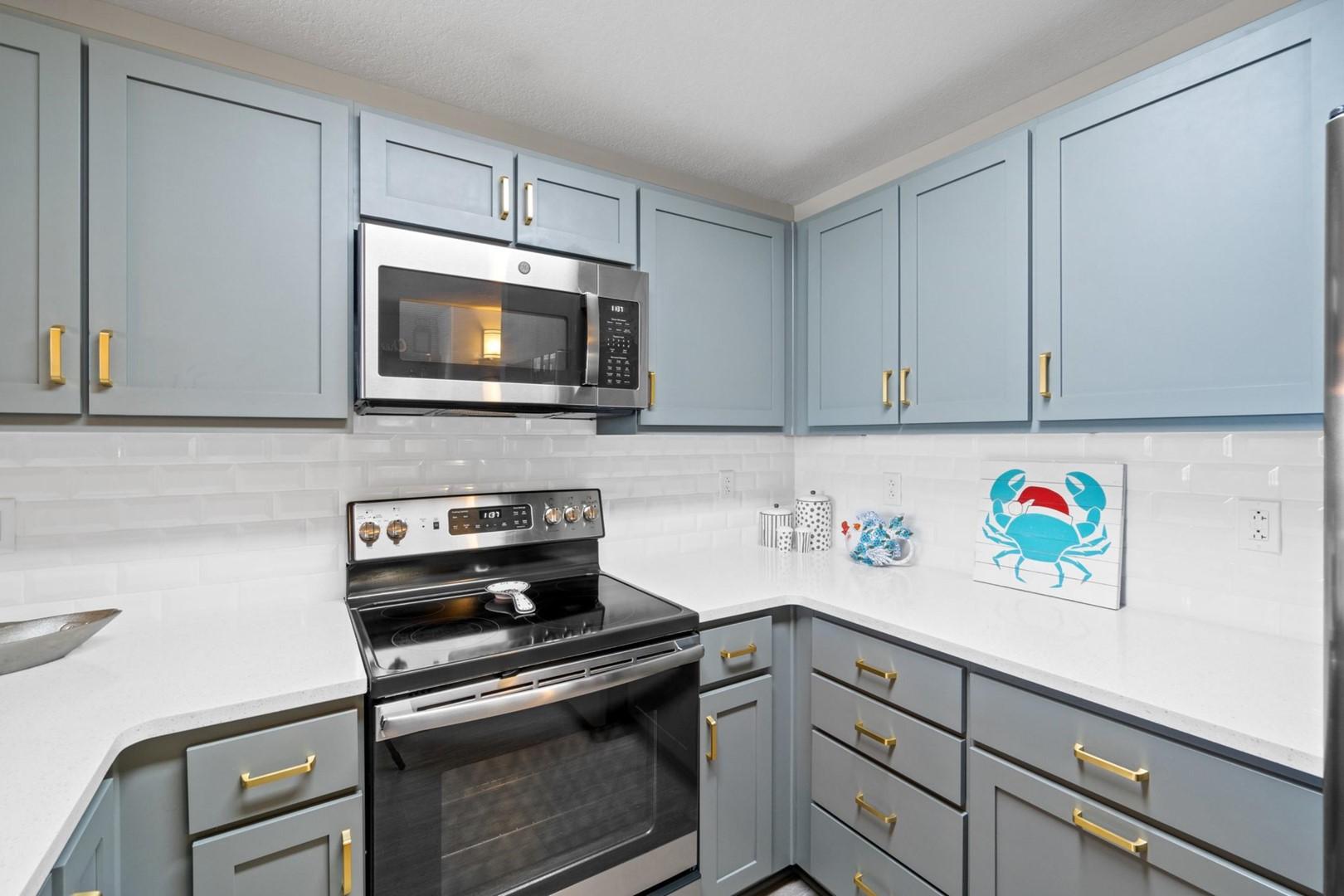 Living Area – Gulf View, 75" TV, Balcony Access, Queen Sleeper Sofa