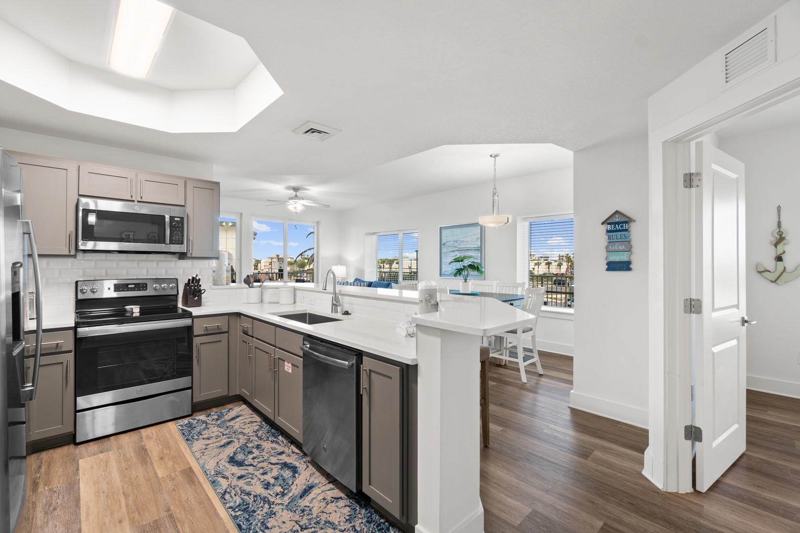 Fully Equipped Kitchen – Stainless Steel Appliances, Granite Counters, Keurig, Ice Maker, Blender, Toaster, Cookware for 12