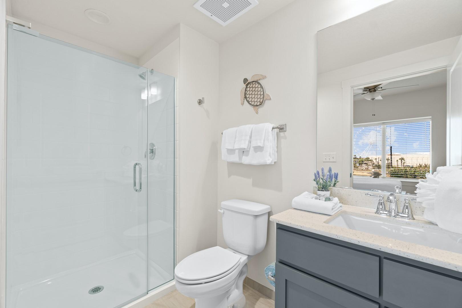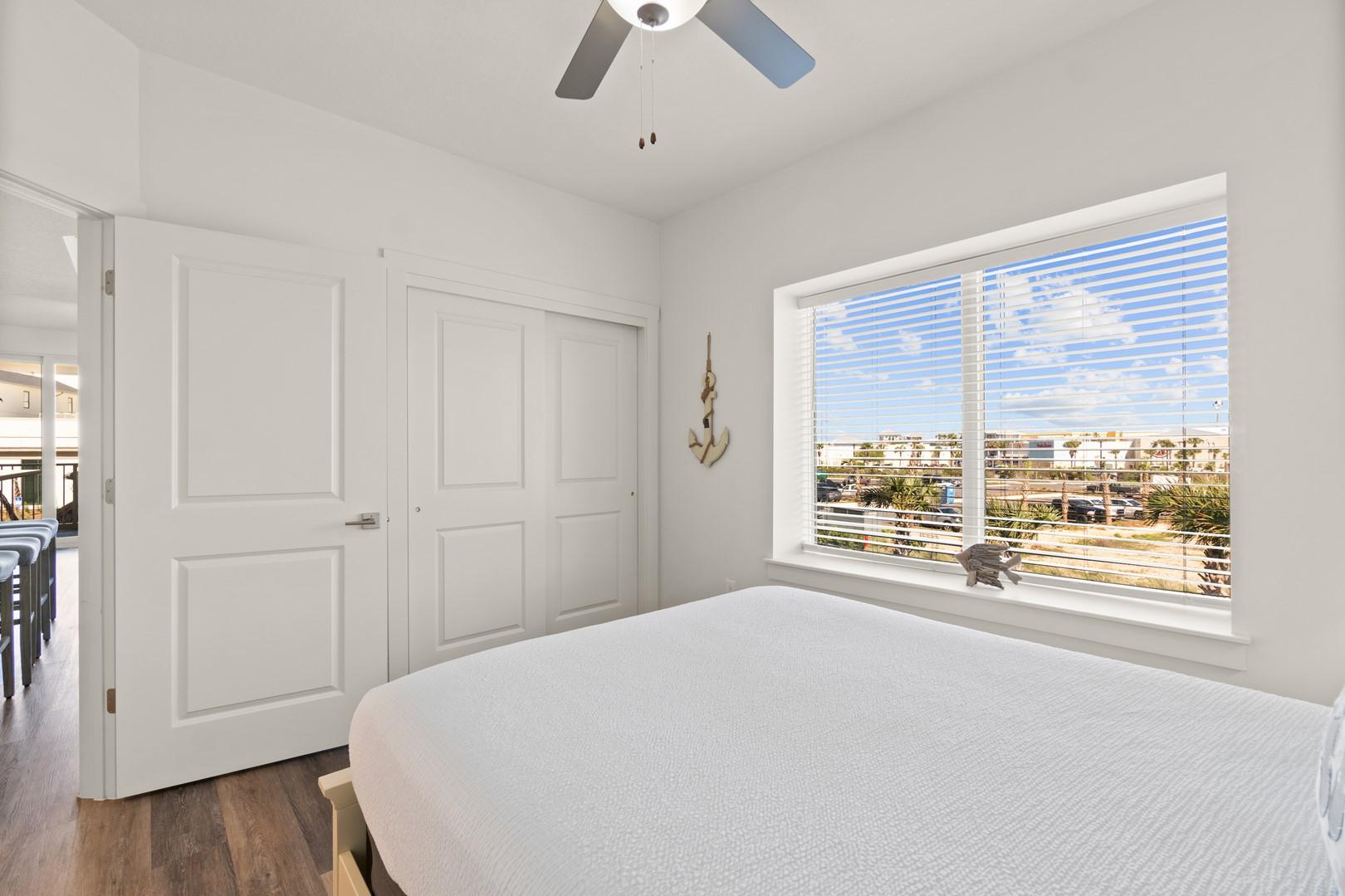 2nd Bedroom – Queen Bed, Smart TV, Ceiling Fan, En Suite Bathroom