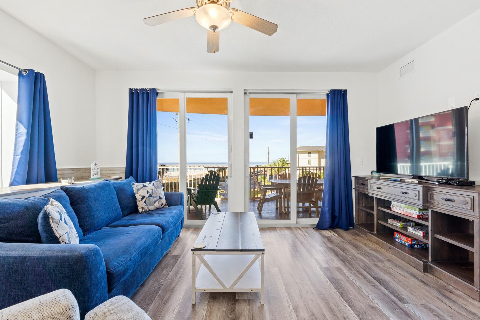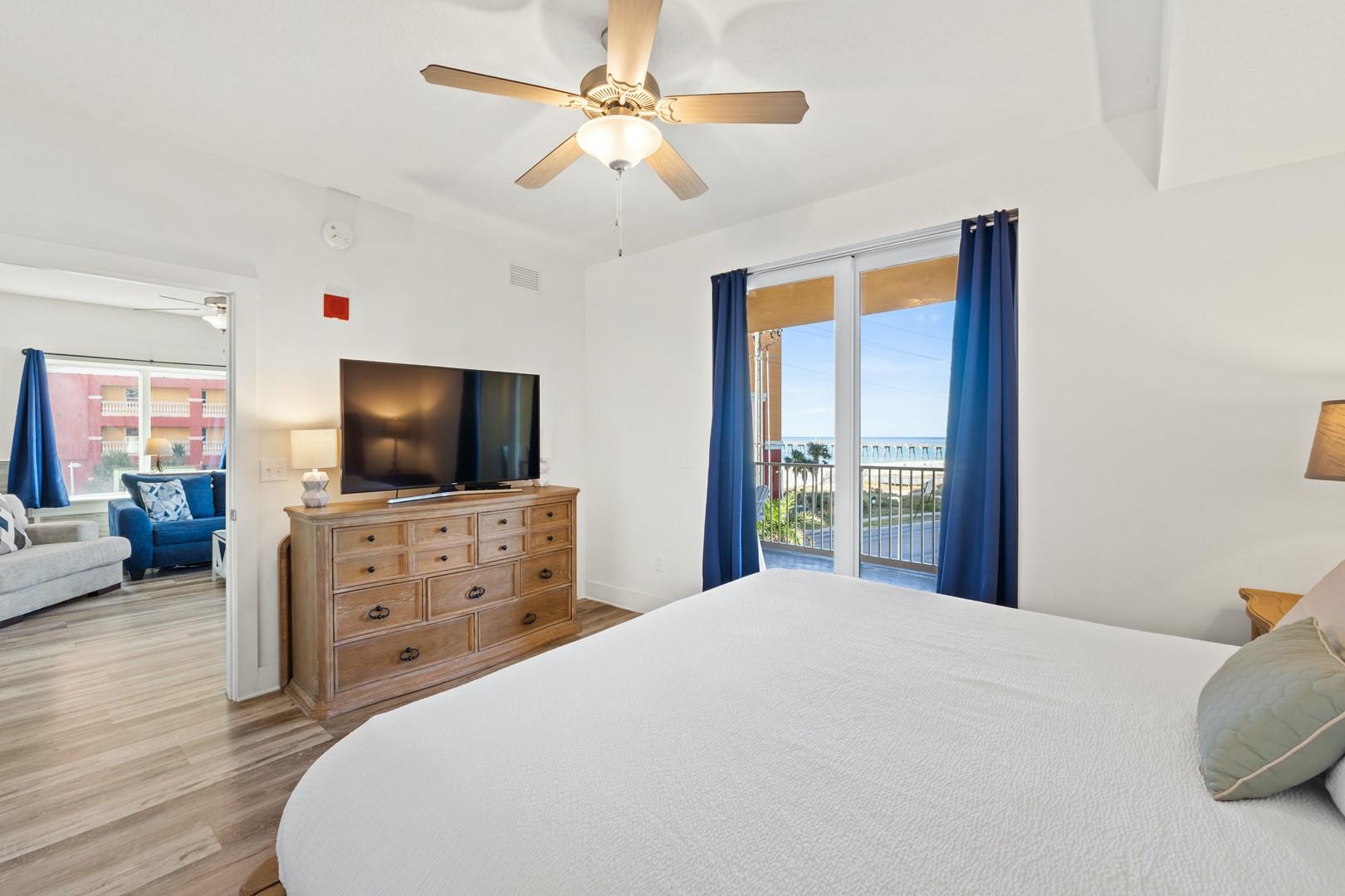 Calypso Tower 3 Unit 301 by Panhandle Getaways is a spacious 3-bedroom, 3-bathroom corner condo featuring a large wrap-around balcony with breathtaking Gulf views. Beautifully furnished with comfort and convenience in mind, this condo is perfect for large families or groups looking to stay steps from the beach and Pier Park.