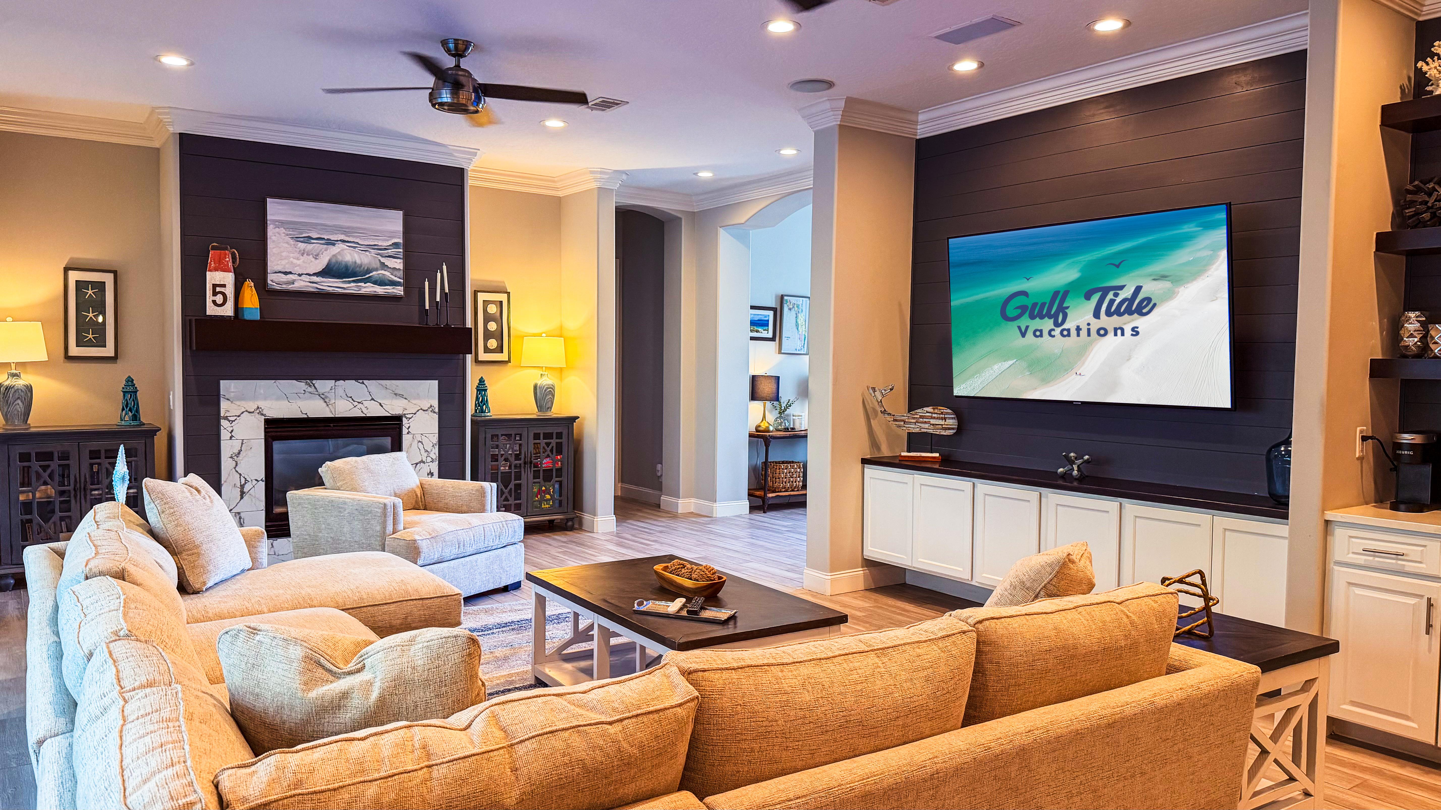 Enjoy elevated living with features like 12-foot ceilings, nine ceiling fans, an extra fridge, and a queen sleeper sofa in the master bedroom. Entertainment is at your fingertips with flat screens in every room, a stereo system with surround house speakers, and more.