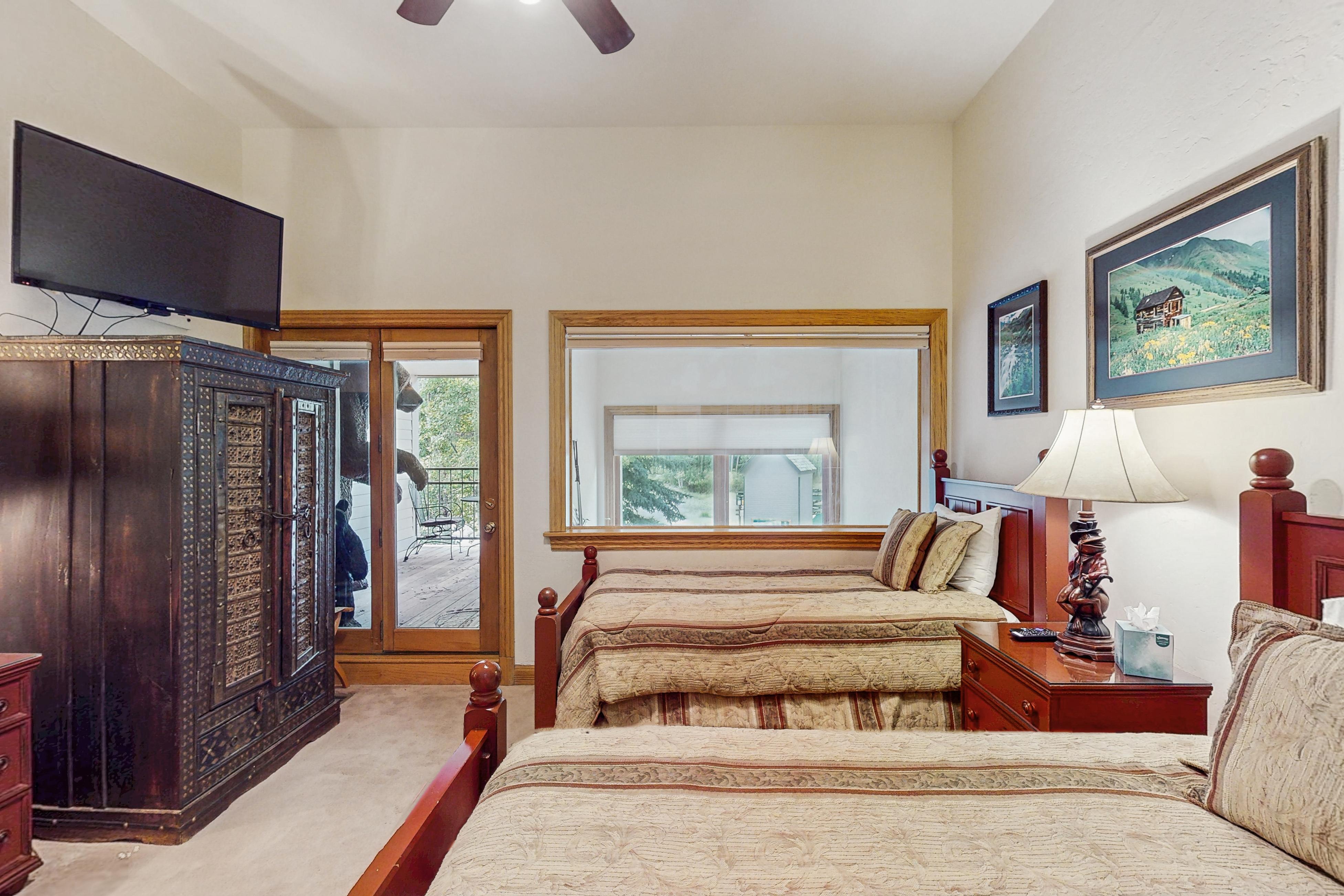 Find yourself slopeside at this beautiful ski-in/out condo sitting in the heart of Telluride for your next ski getaway or family vacation! With an open-concept layout, three spacious bedrooms, and a private balcony, up to nine guests can spread out and find their own piece of paradise. After a long day of skiing on fresh powder, the gas fireplace awaits you, providing a perfect place to unthaw with a warm cup of tea. When everyone is ready for dinner, hop into the full kitchen, complete with granite countertops and stainless steel appliances, and whip up a hearty meal for all to enjoy while reminiscing about the day's adventures at the dining table or breakfast bar. Settle down for the night with a soak in the shared hot tub or simply relax on the large sofa as a movie plays on the TV.