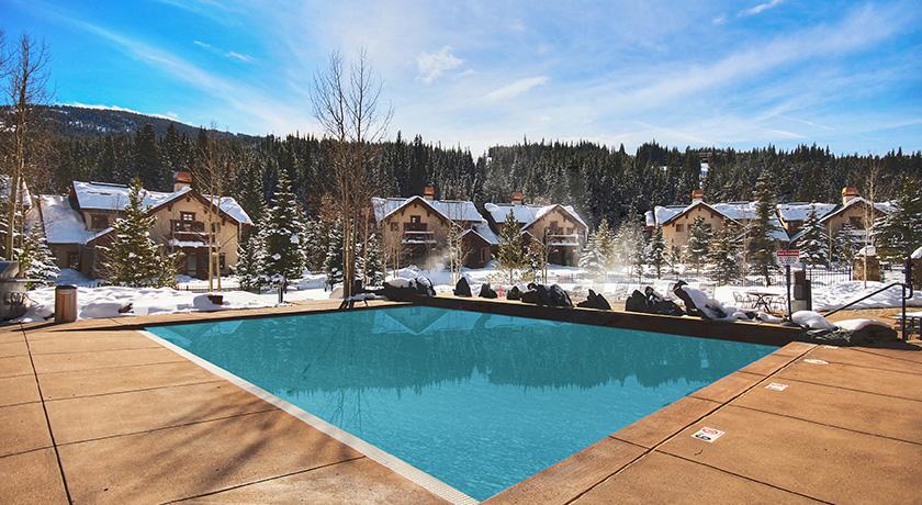 access to the slopes. Building amenities include an outdoor hot tub, pool, and