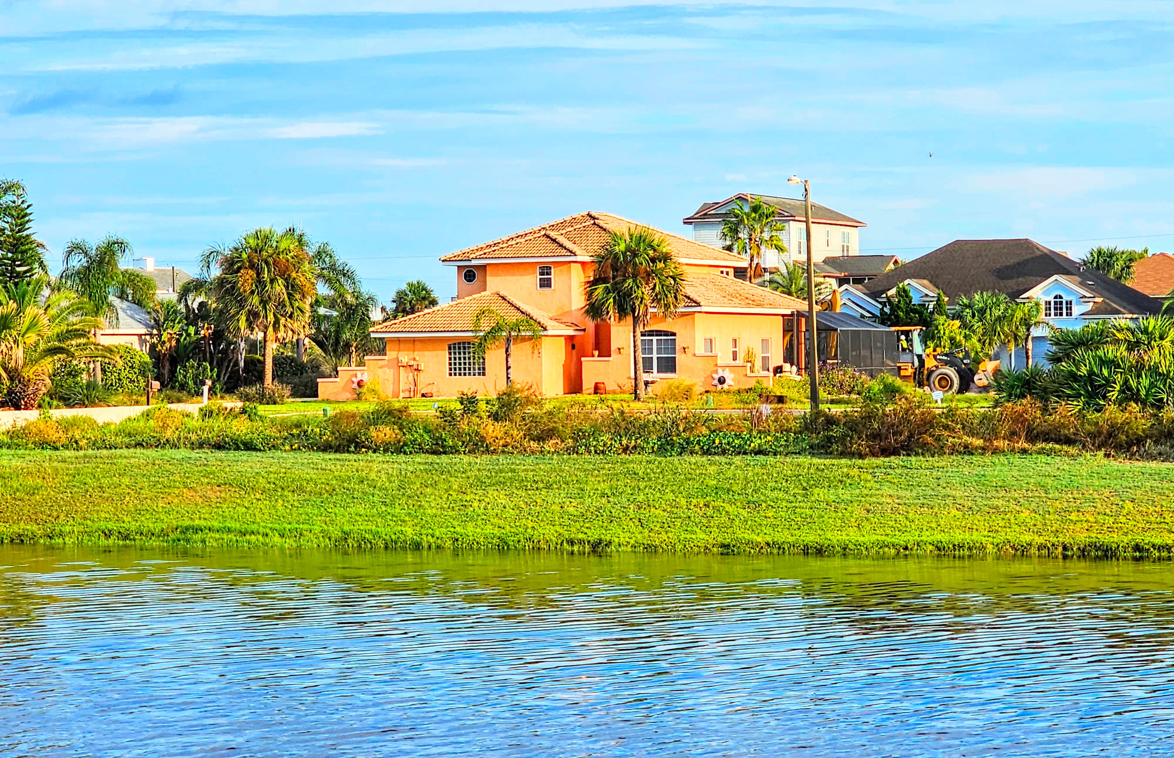 This stunning pool house is perched just steps away from the glistening waters!