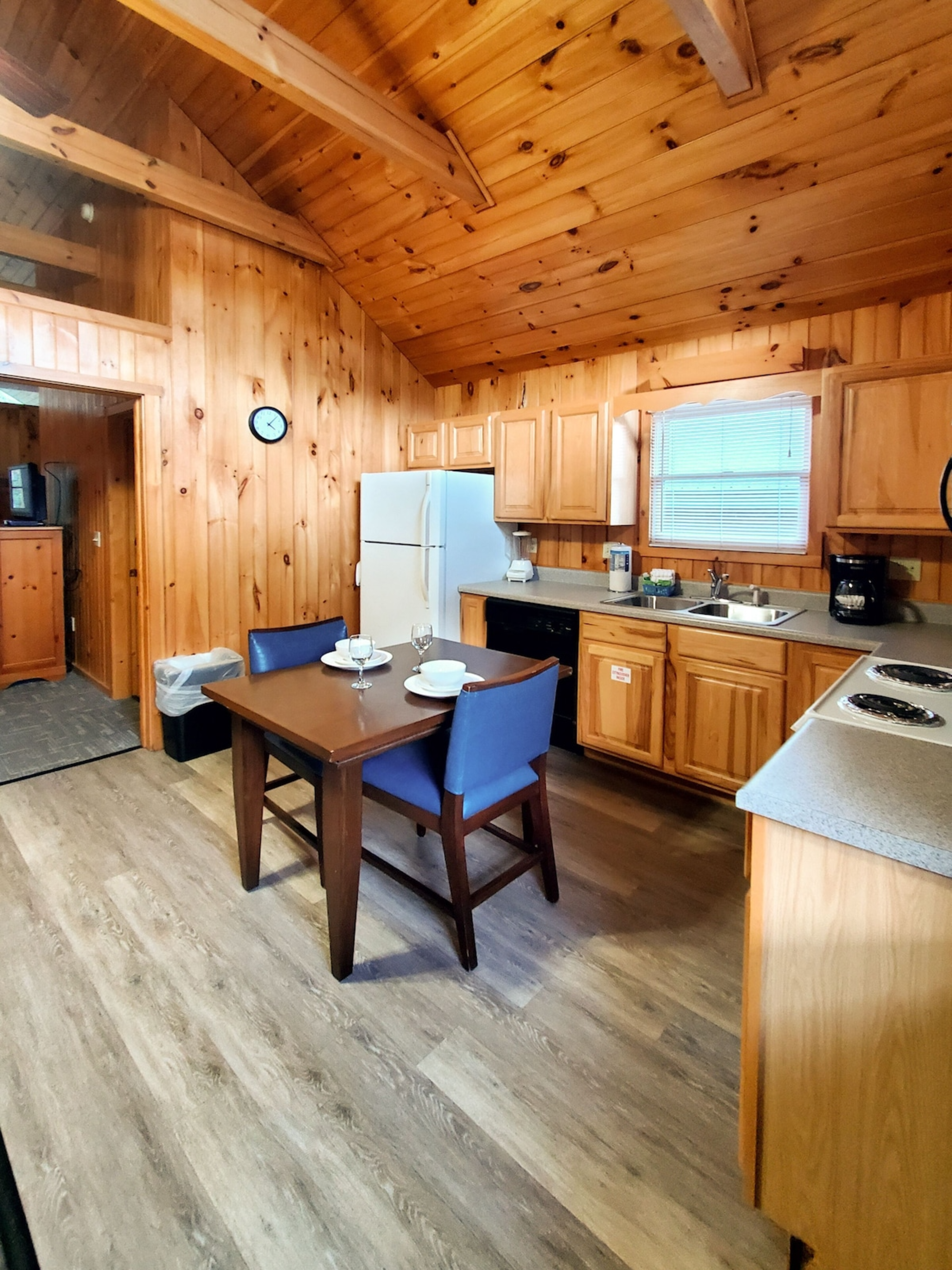 The cabin features a well-appointed kitchen, making it easy to prepare your favorite meals. Step out onto the private deck to enjoy the fresh mountain air and a BBQ with the provided grill. Entertainment options abound with a smart TV, cable, satellite, and a selection of books and games.