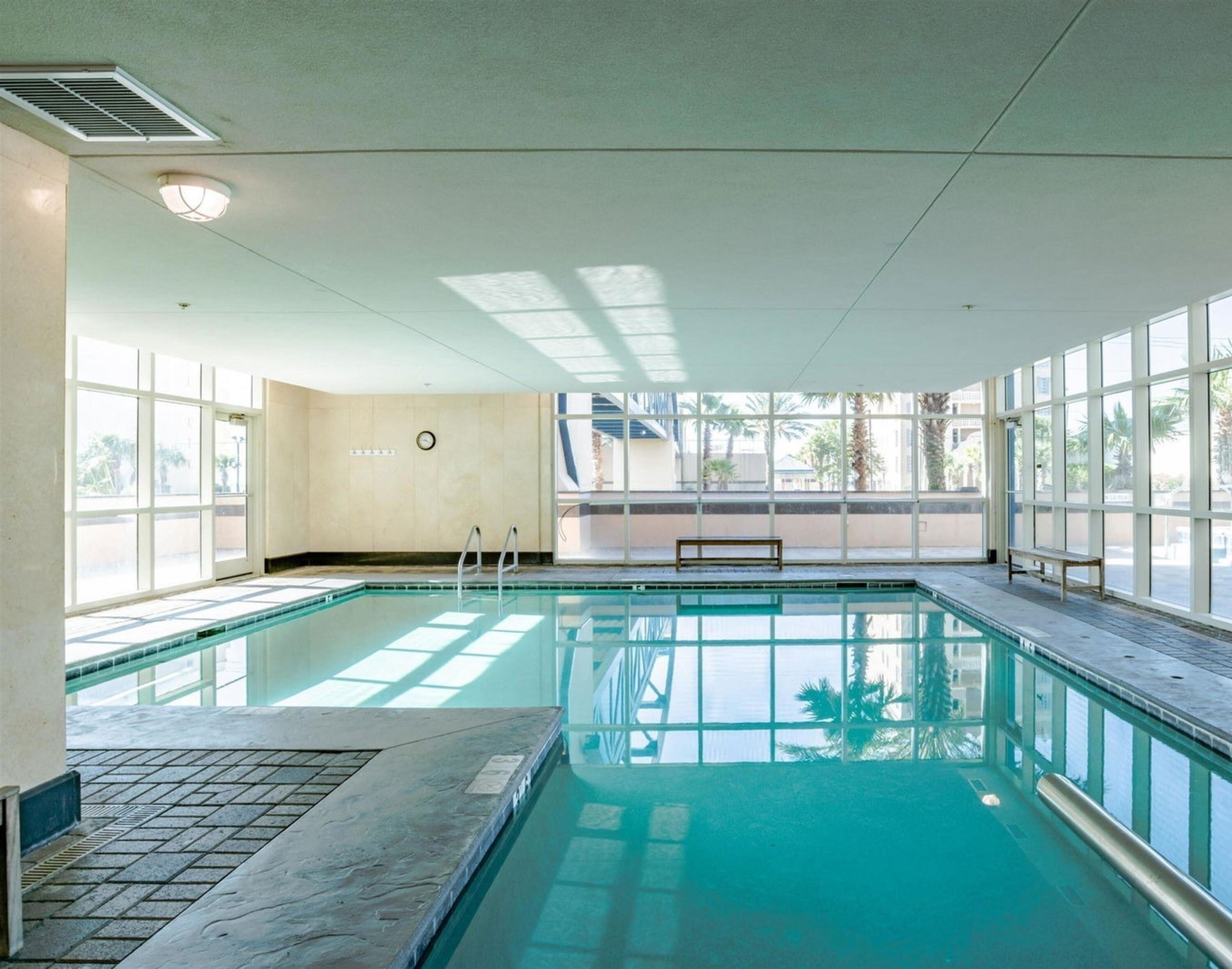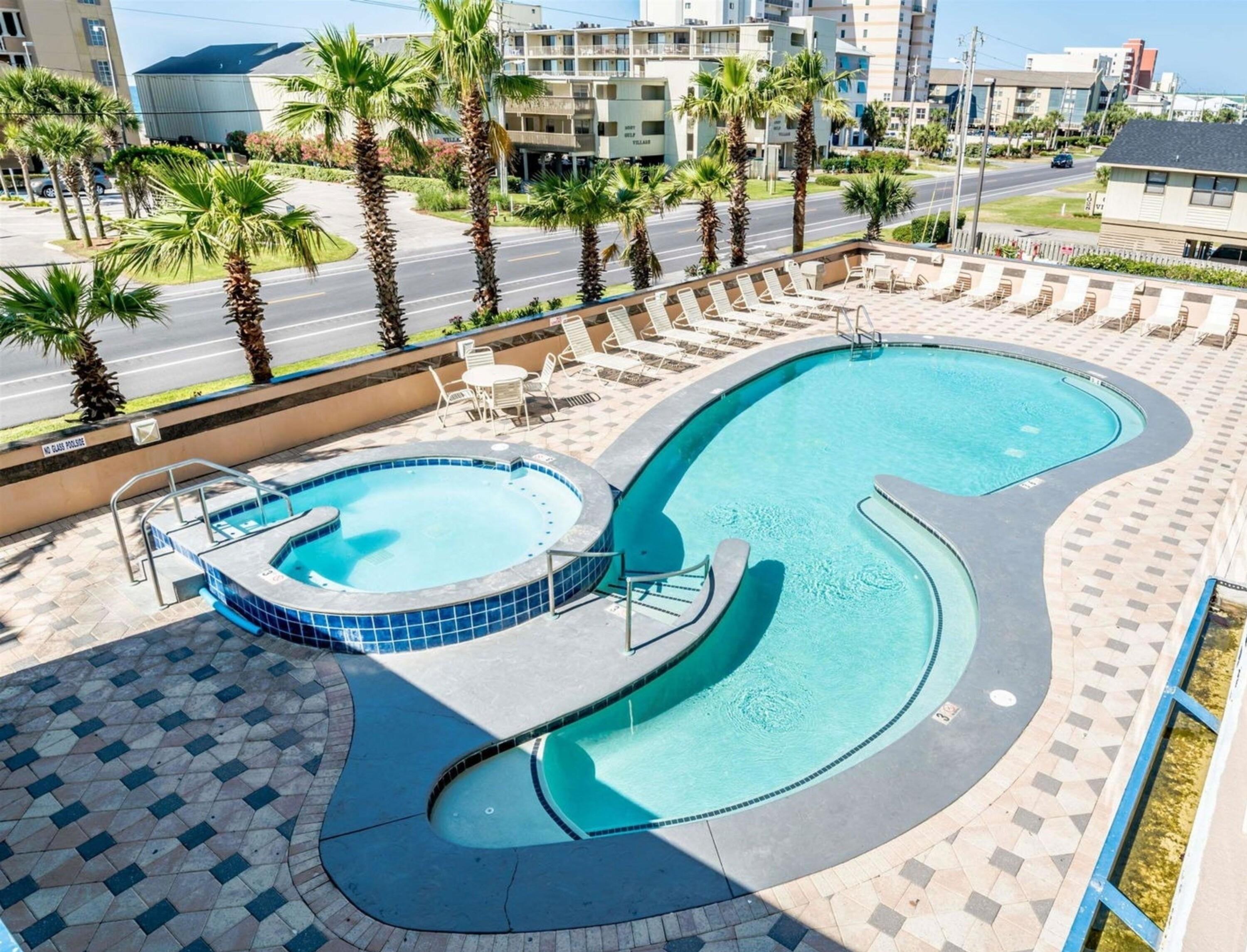As a guest, you'll have access to three pools—two outdoor and one indoor—plus a hot tub and a fitness center. The Lagoon side features the indoor pool, one outdoor pool, and a hot tub, while the Gulf side boasts another outdoor pool, accessible via a covered walkway.