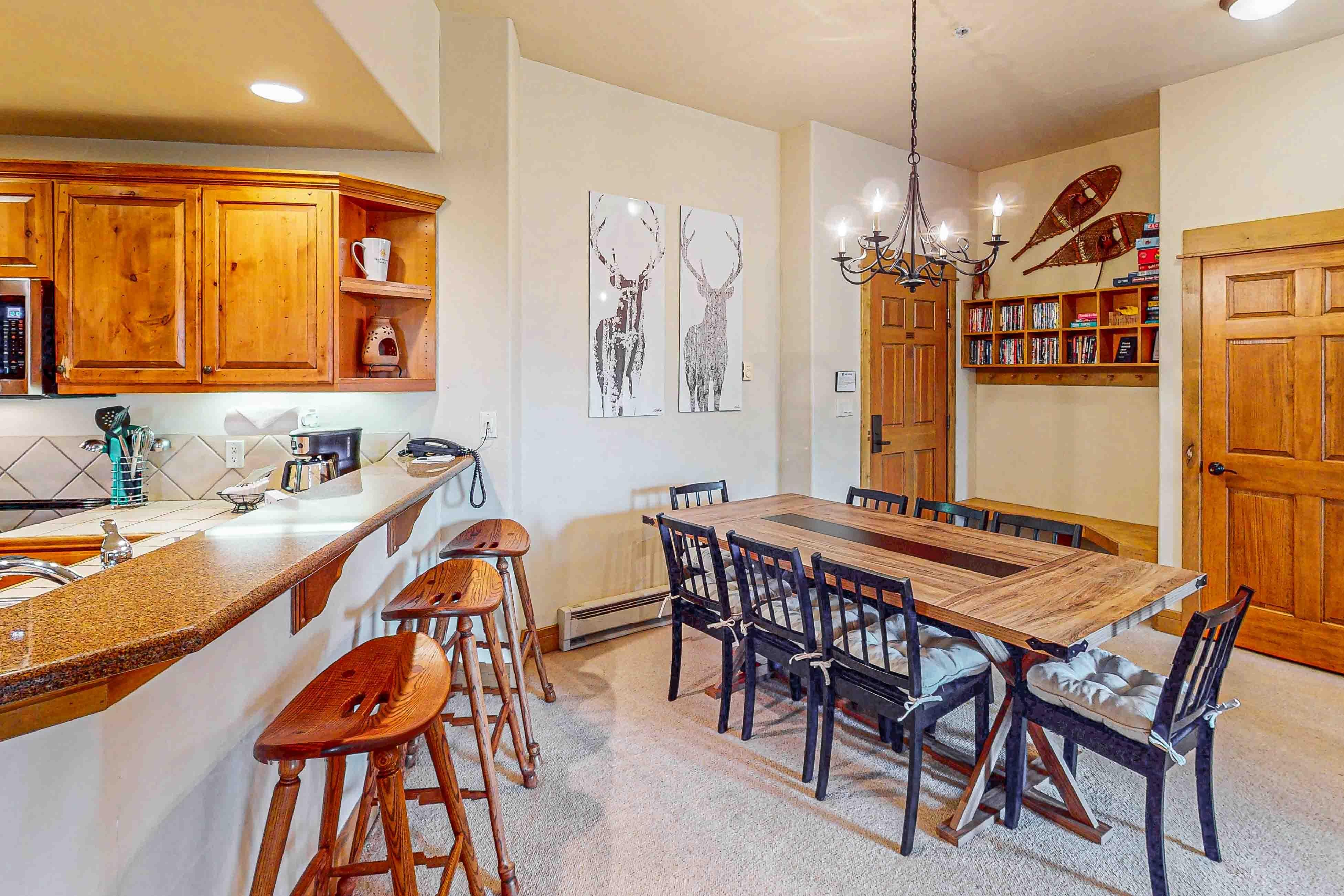This condo is part of the EagleRidge Lodge in Steamboat Springs, a complex that's ideally positioned just a quarter-mile stroll from the gondola at Steamboat Ski Resort. In the winter months, the resort offers 18 ski lifts, 169 trails, and 2,965 acres of skiable terrain, highlighted by the gladed areas of Pioneer Ridge and Sunshine and Storm Peaks. Come summertime, you can easily go mountain biking or hiking, take strolls through the Yampa River Botanic Park (two miles northwest), or ride your bike along the famous Yampa River Core Trail, a 7.5-mile, paved path that runs through the heart of Steamboat Springs. Downtown Steamboat Springs, which is home to the Old Town Hot Springs and wonderful restaurants that include The Laundry, Salt and Lime, and Carl's Tavern, is three miles north. You'll also be five miles south of Fish Creek Falls, 10 miles south of Strawberry Park Hot Springs, and 30 miles south of Steamboat Lake State Park.