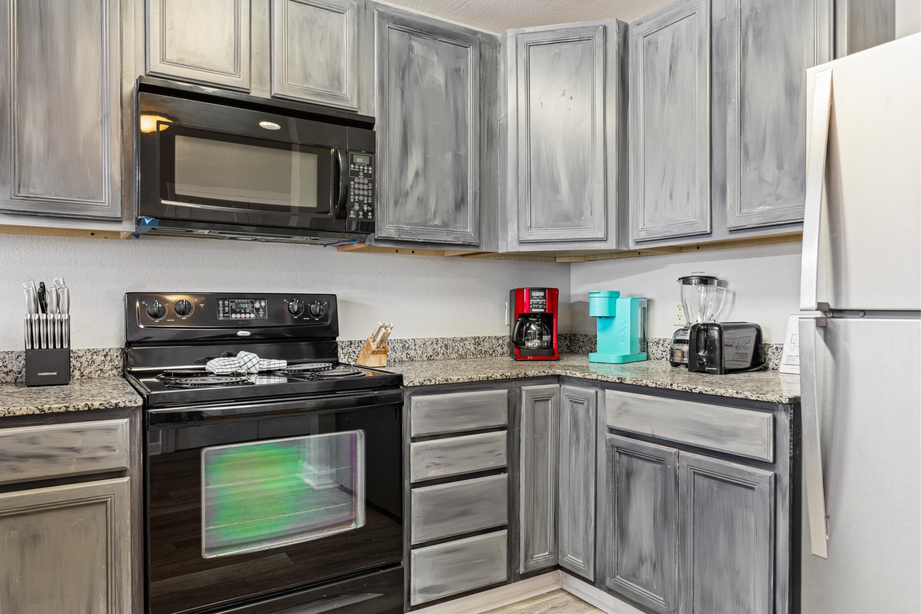Step inside to discover a bright and airy living space, tastefully furnished with plush seating and a welcoming atmosphere—perfect for gathering after a day of exploring. The open-concept layout flows seamlessly into a fully equipped kitchen, complete with stainless steel appliances, ample counter space, and all the cookware and utensils you'll need to whip up a family meal or a quick snack. Adjacent to the kitchen, a cozy dining area invites you to enjoy home-cooked dinners or game nights with loved ones.