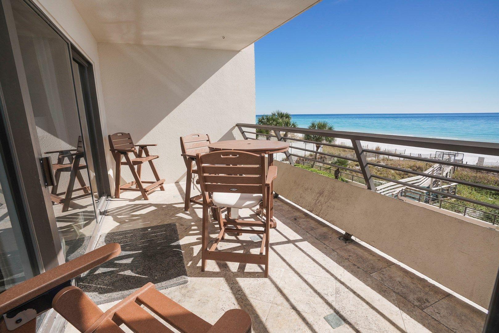 Large Gulf-front balcony with beachfront views
