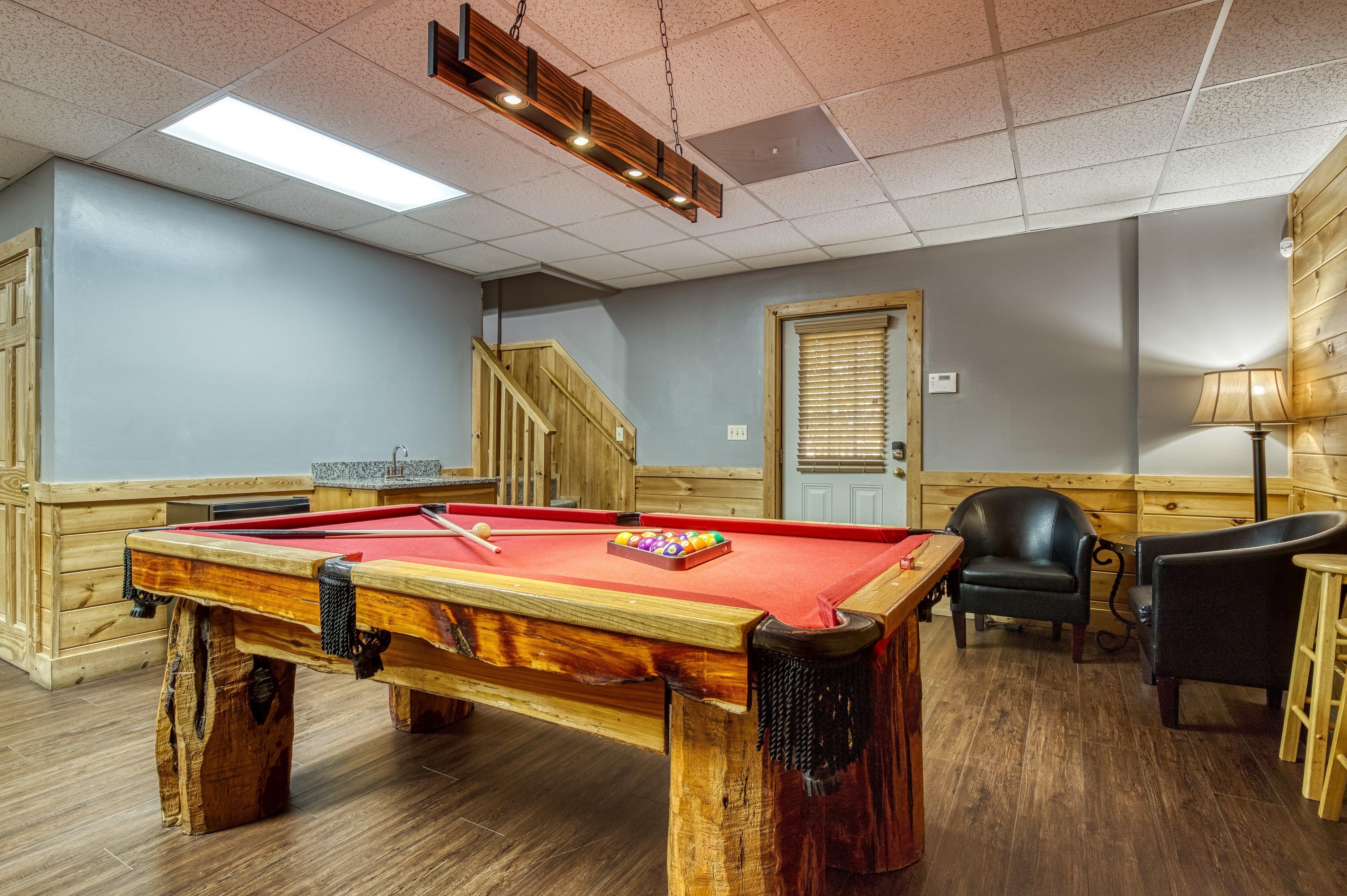 pool table, foosball table, and three sleeper sofas for extra sleeping
