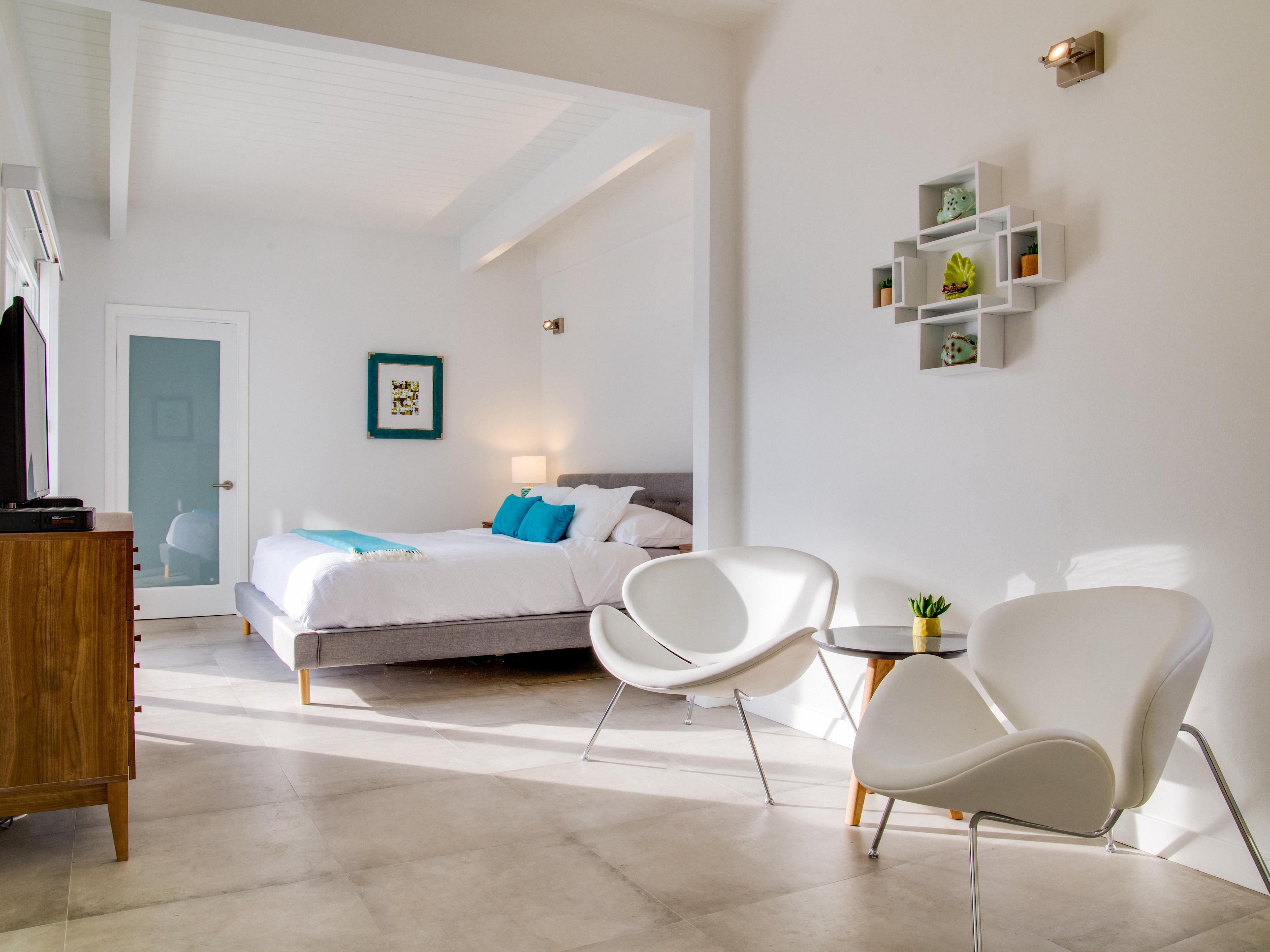 All of the sleeping quarters feature comfortable hotel-quality mattresses, ample storage, and flat screen televisions. The master bedroom offers a king-sized bed, an en suite bath and a sitting area. The two Queen guest rooms share easy access to the spa-like hall bath. The separate king-sized casita (guest house) offers direct pool access, a wet bar with breakfast counter, a wine fridge plus a game table that doubles as a great work space for those who need to mix a little business with pleasure.