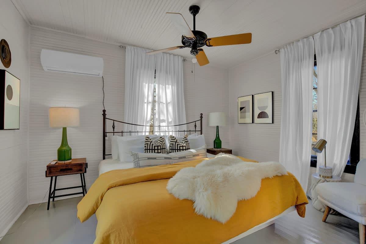 This gorgeous home consists of three bedrooms and two bathrooms. The spacious bedrooms offer the latest mattresses and bedding offering an optimally comfortable and luxurious night's sleep especially after the long days of enjoying downtown Fredericksburg and the local wineries. It's the perfect place for your guests to relax and unwind. Our open-spaced kitchen comes fully stocked with plate ware, flatware, serving platters, glassware including wine glasses galore, and other little necessities for those wishing to dine in.