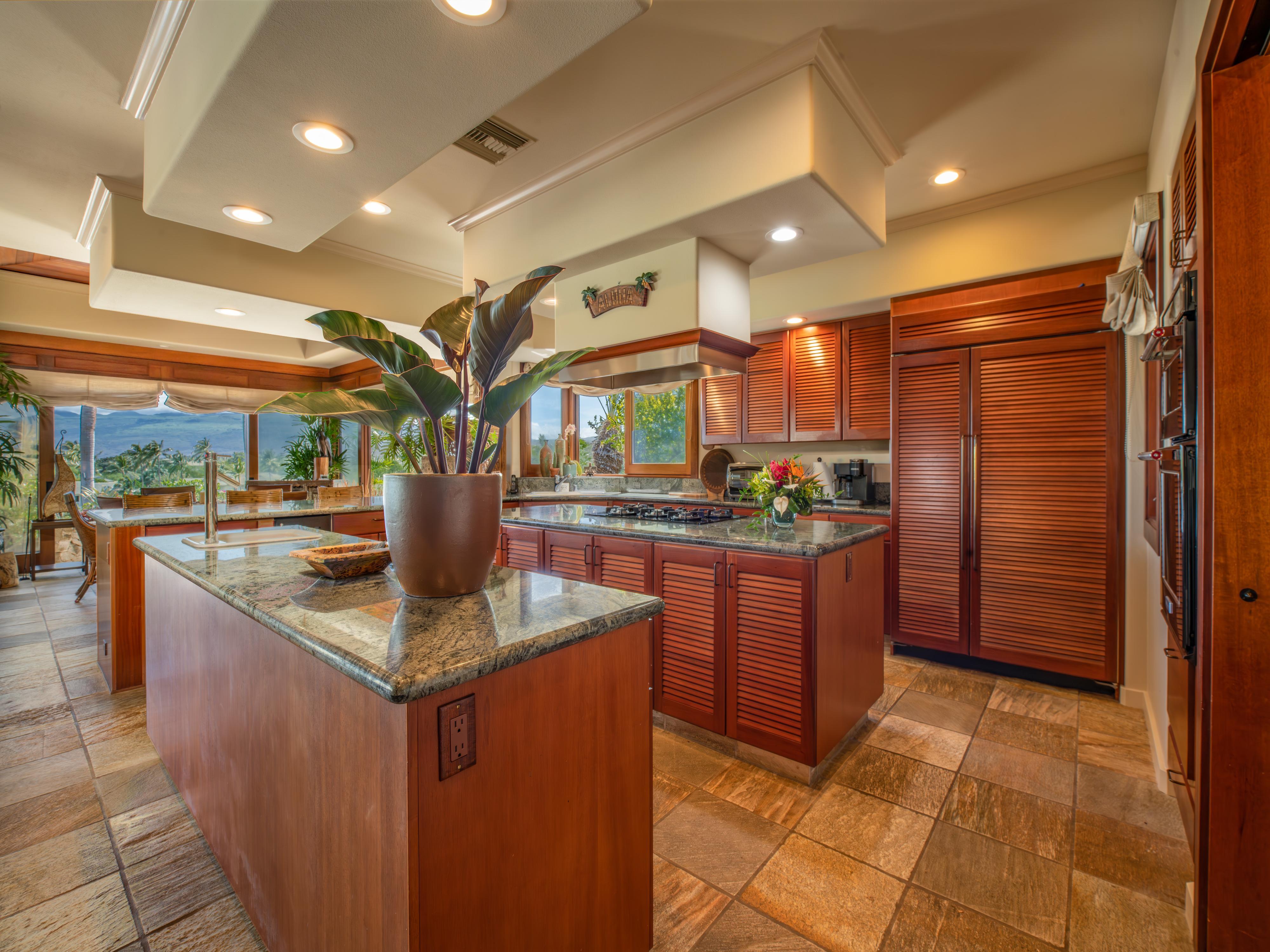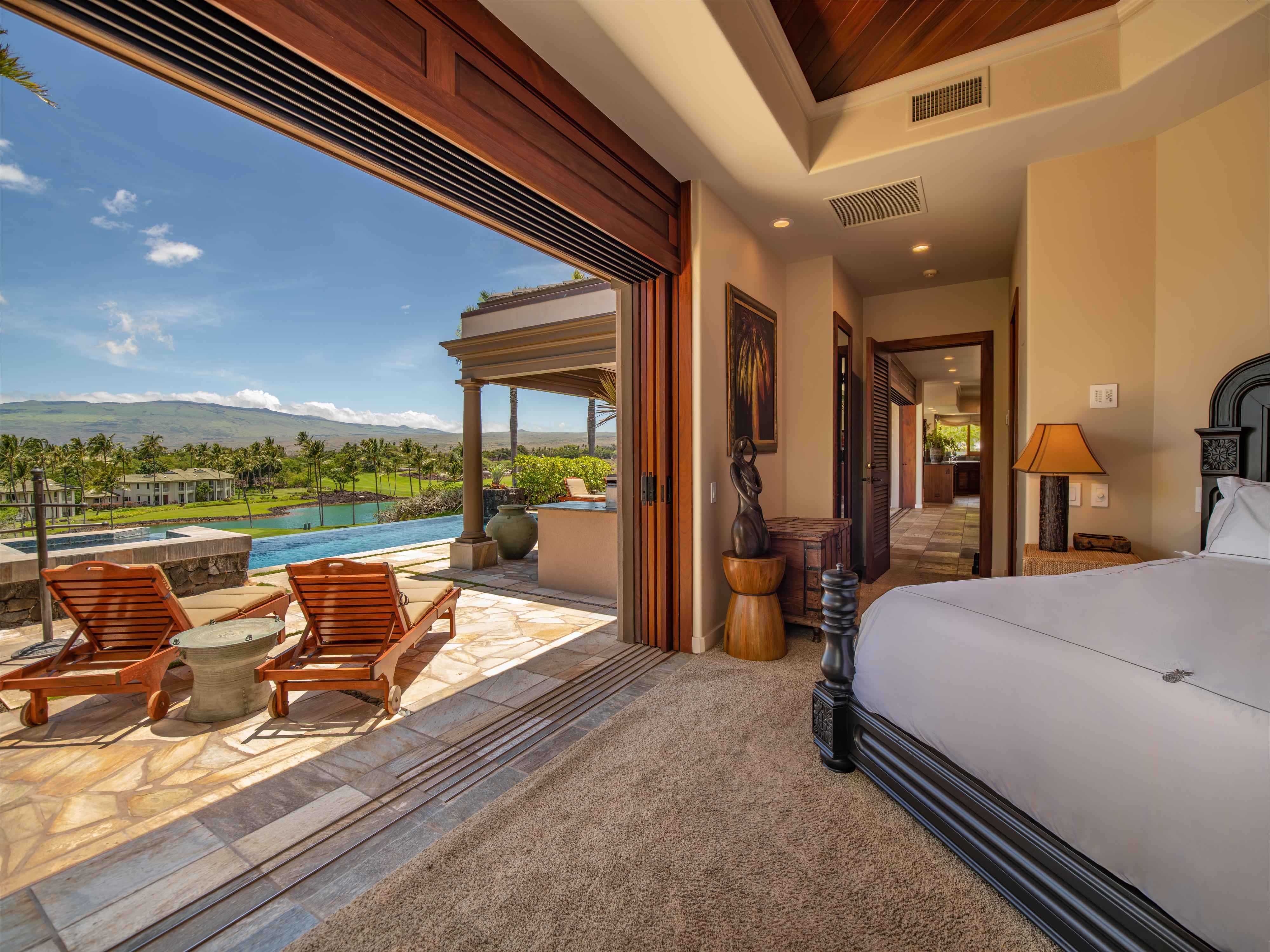 Escape to paradise and indulge in the ultimate luxury experience at our breathtaking three-bedroom, three-bathroom 2,957 square foot vacation rental on the Big Island. Named Hale Maluhia, which translates to Peaceful Home, this beautifully appointed residence is spacious, elegant, and offers a serene home base for your Hawaiian vacation. With its stunning mountain and golf course views, infinity pool, jacuzzi, and an array of modern amenities, this vacation rental is designed to provide an unforgettable retreat for up to eight guests.