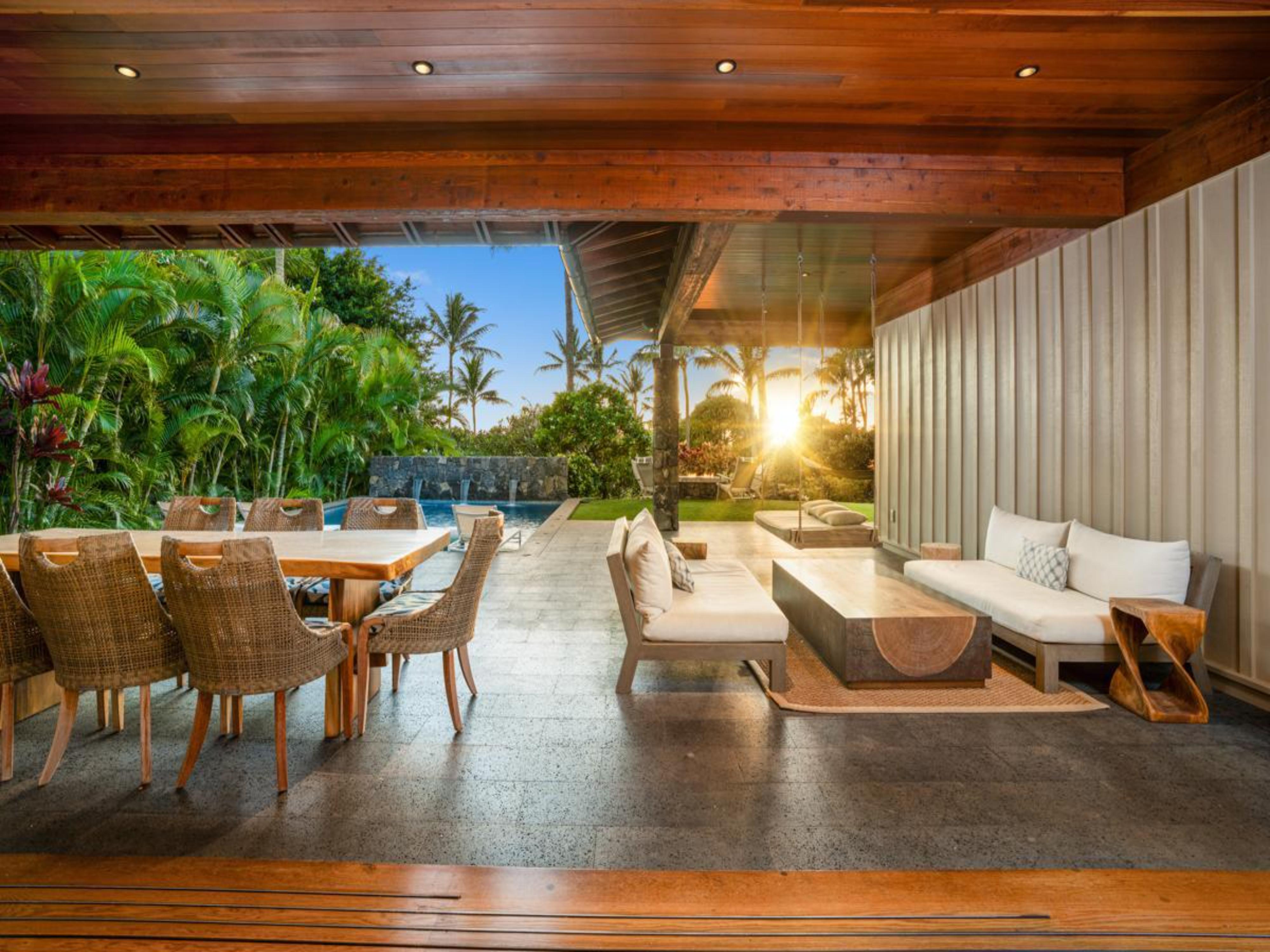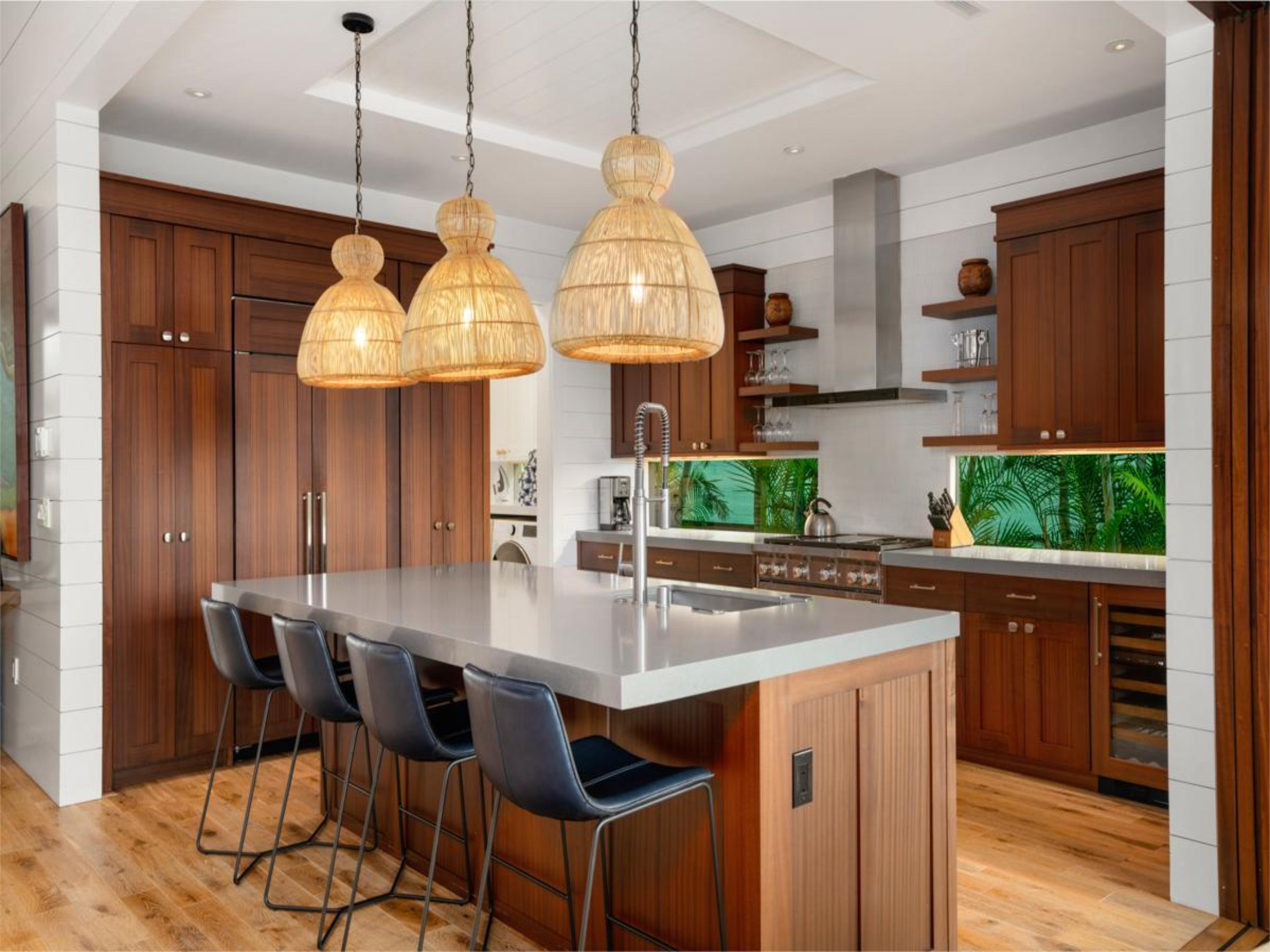 In the heated pool, you will find a Baha shelf with chaise lounges for ultimate relaxation. Gather around the fire pit for sunset cocktails to wind down after a day of adventure. The chef’s kitchen and private wine fridge invite long-lasting memories of your time on Kauai. Indulge in the outdoor lava rock garden shower located off the primary suite.
