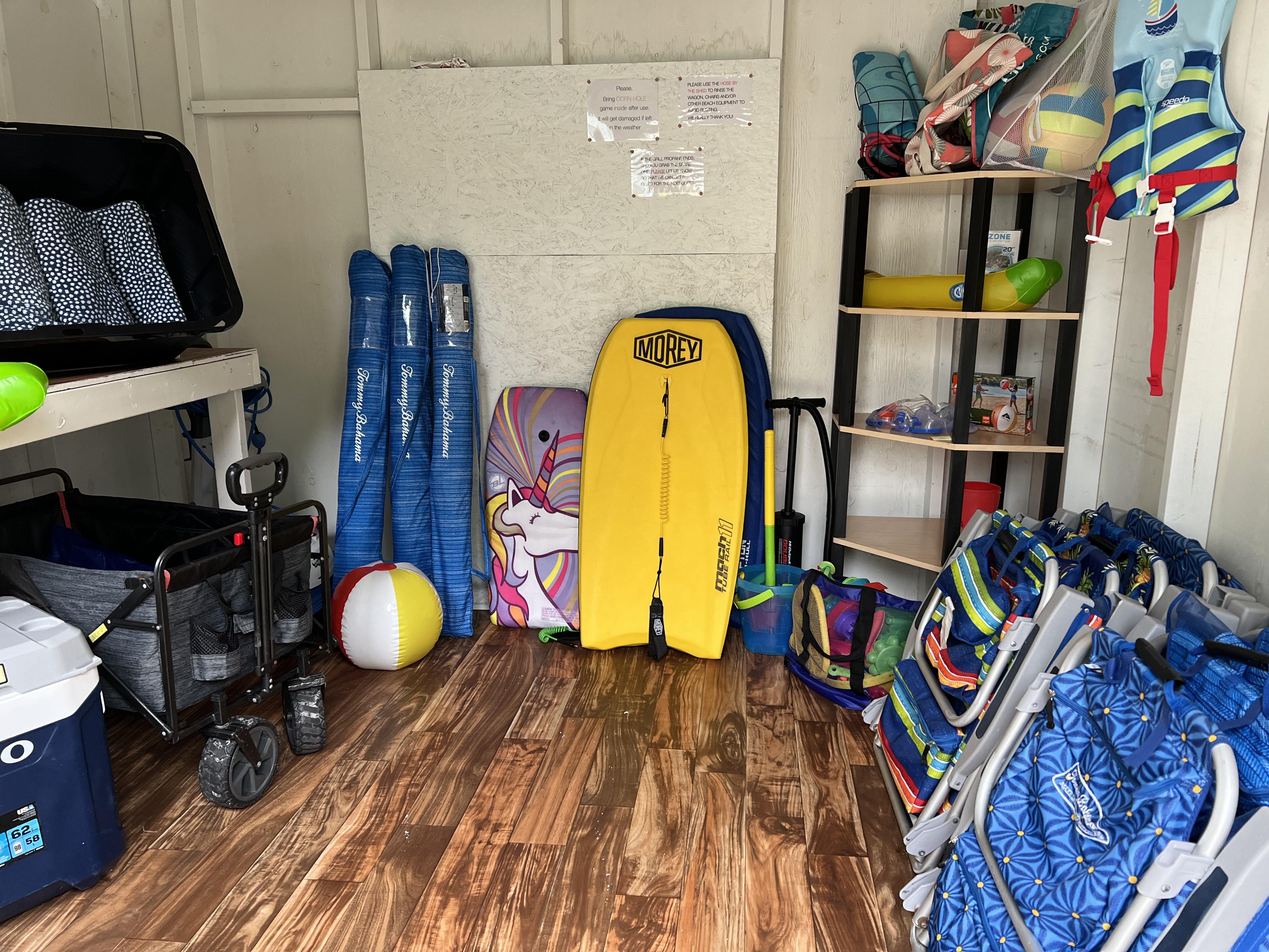We provide a beach wagon, a wheeled Igloo cooler, Tommy Bahama beach chairs,