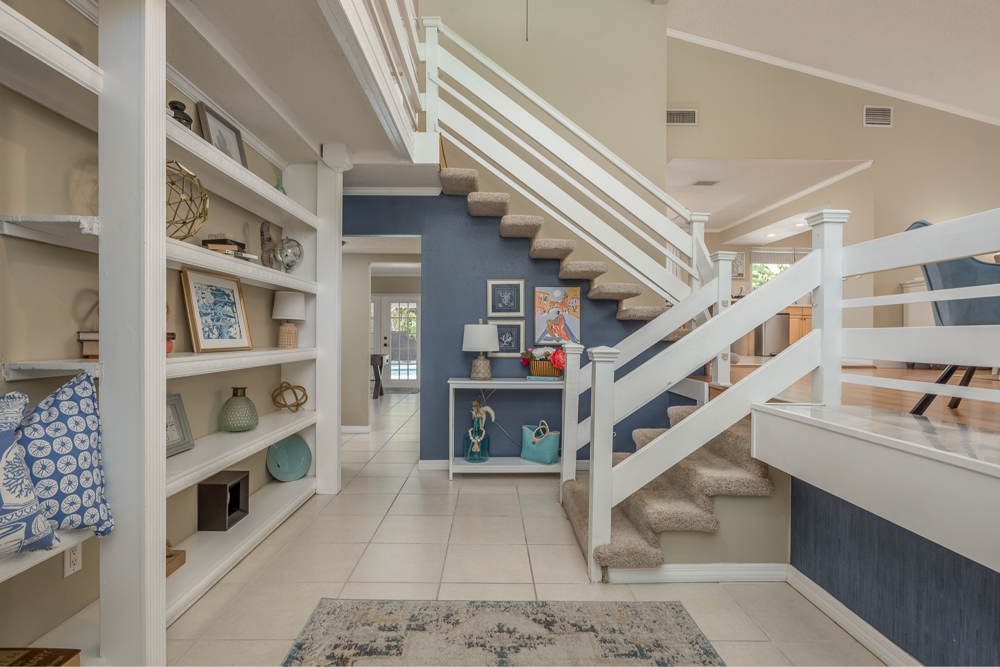 On another floor, five steps up, enjoy the comfort of the great room’s large