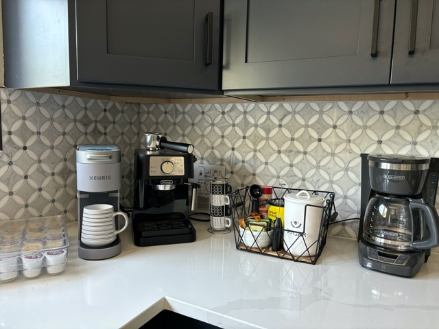 For the coffee lovers, we offer an espresso maker and a traditional drip pot.