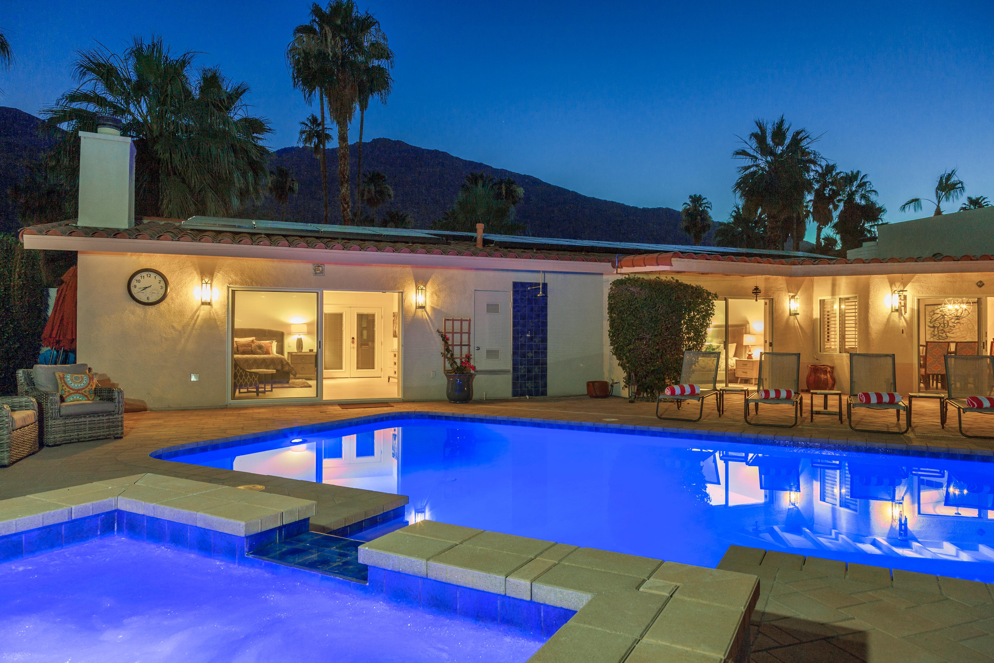 Conveniently nestled in elite Tahquitz River Estates, this enchanting 4BR/4BA,1957 built, Spanish Revival style home is walkable to Palm Canyon Drive, South Palm Springs Business District and bustling Downtown Palm Springs. Old Spanish style homes of Tahquitz River Estates are casual chic; informal, yet refined with a distinct Mediterranean flavor. Hidden Haven is a great example of this style. Universal E/V Charger! Beds: K,K,K,K (converts to T,T)