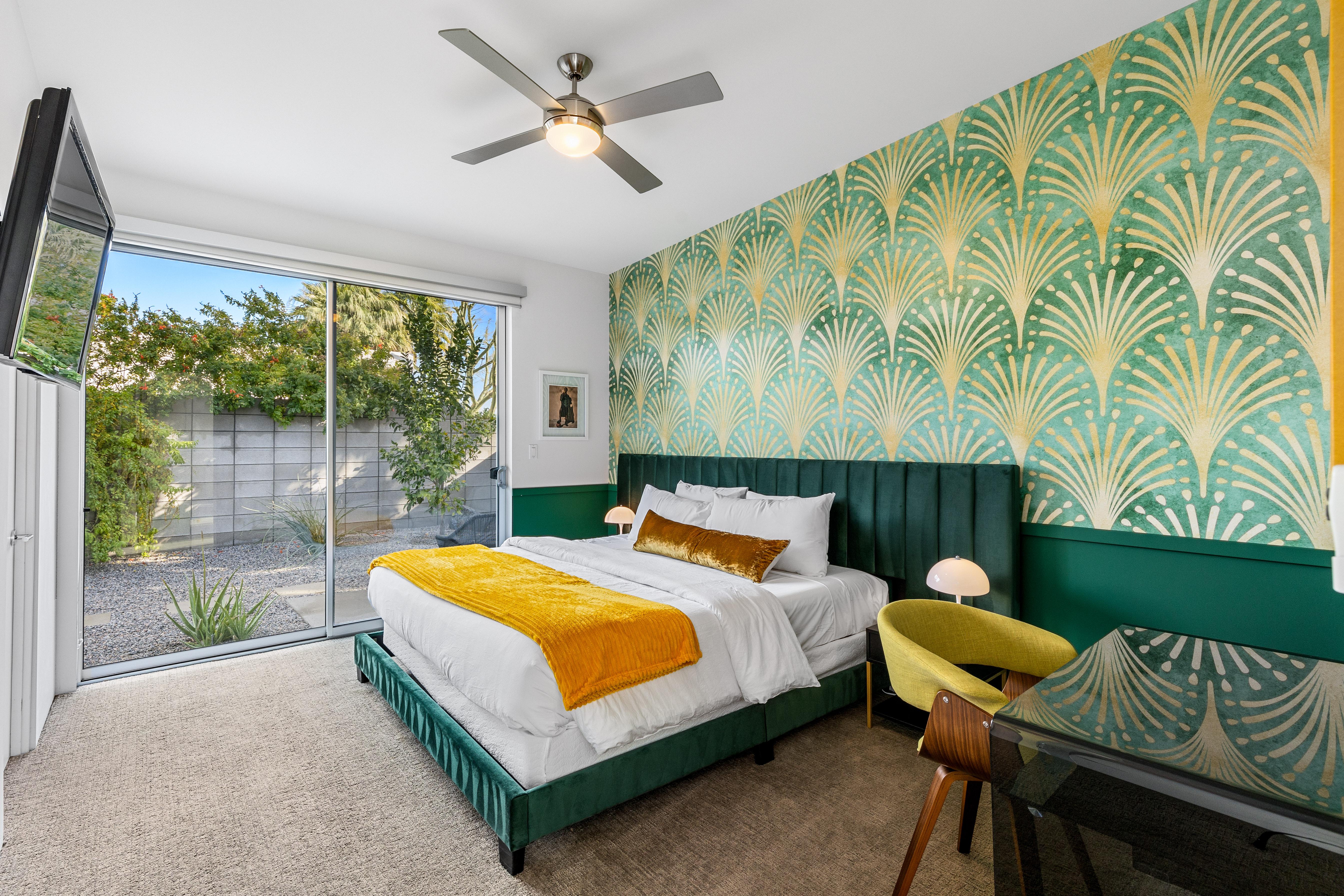 Artists, designers, and mid-century modern enthusiasts will love High On Design, nestled in the quiet Warm Sands neighborhood. It’s the perfect house for your relaxing trip or creative Palm Springs vacation. This house is located in a quiet neighborhood; no parties or events are allowed. In-person check-in is required. Beds: K,K,K,Q