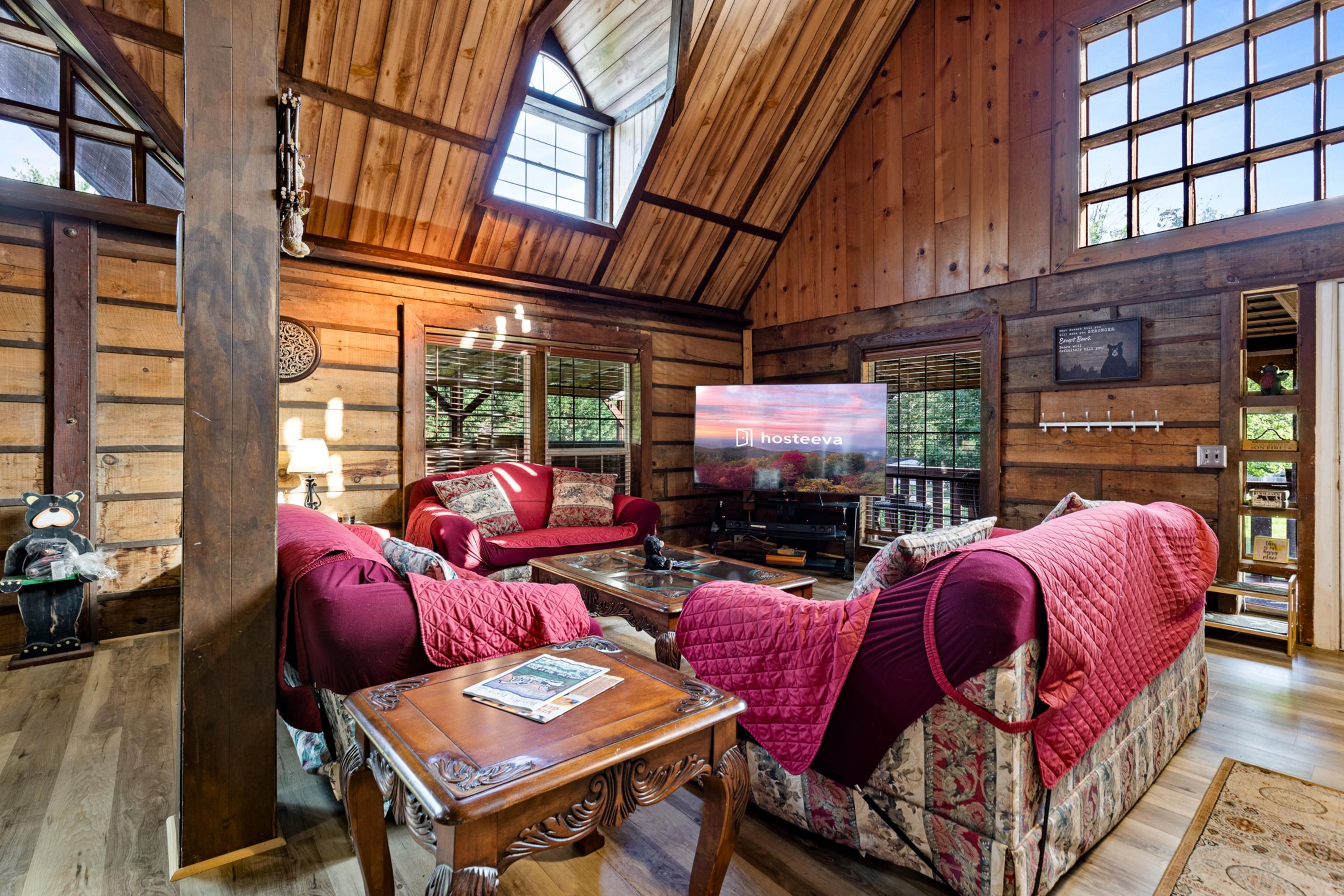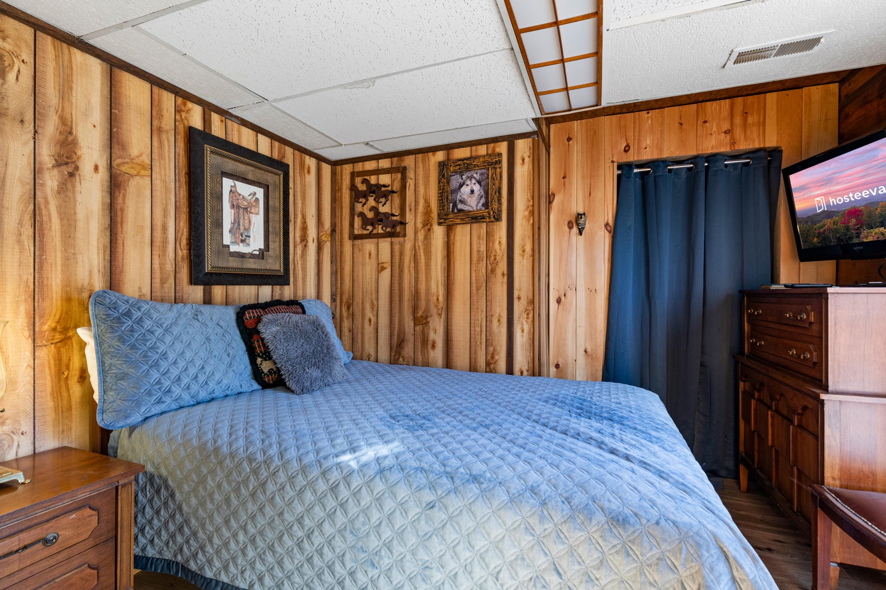 If you're looking for the Ritz Carlton or the Four Seasons, this cabin is NOT for you, but if you're looking for a rustic country cabin with loads of country character, you've found it. Built during the 1980's by a self-described local hillbilly for his family, this cabin is pure country. Resting on nearly an acre atop one of the higher points in Sevierville without the white-knuckle mountainside roads, the cabin boasts beautiful views including the French Broad River in the distance.