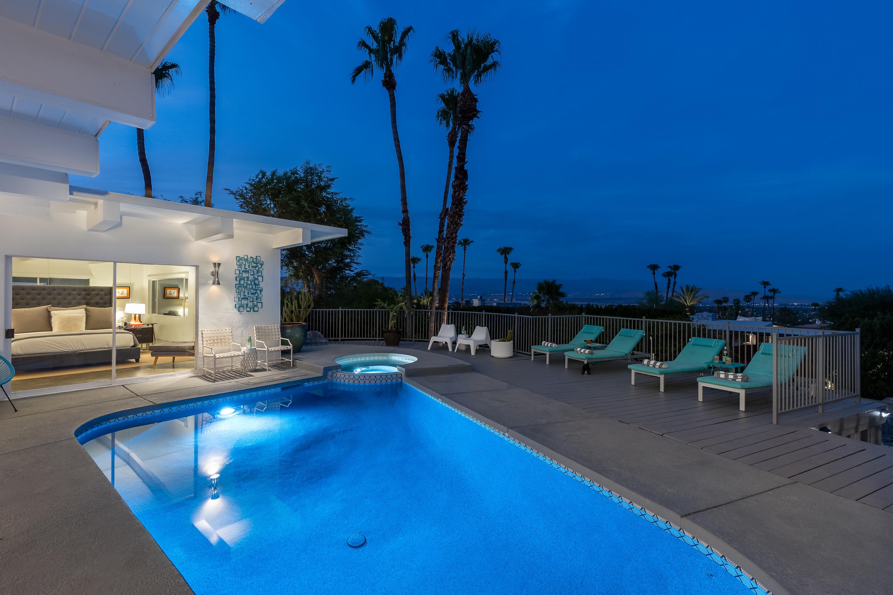 Gorgeous views, outdoor spaces, a great location, and total privacy: Hilltop Haven has it all. Two large King Bedrooms and a huge common space with multiple seating areas. The fully-gated property boasts an in-ground pool and spa on a raised deck with breathtaking views of the Coachella Valley below and the San Jacinto Mountains above. Tasteful appointments salute the midcentury modern heritage of this unique Palm Springs home. And while located just 10 minutes from downtown Palm Springs, the natural setting provides a sense of seclusion and privacy. Whether you're lounging by the pool, savoring a home-cooked meal, or relaxing in one of the two king-bedroom suites, you'll find that every detail has been designed with your comfort and enjoyment in mind. Beds: CK,CK