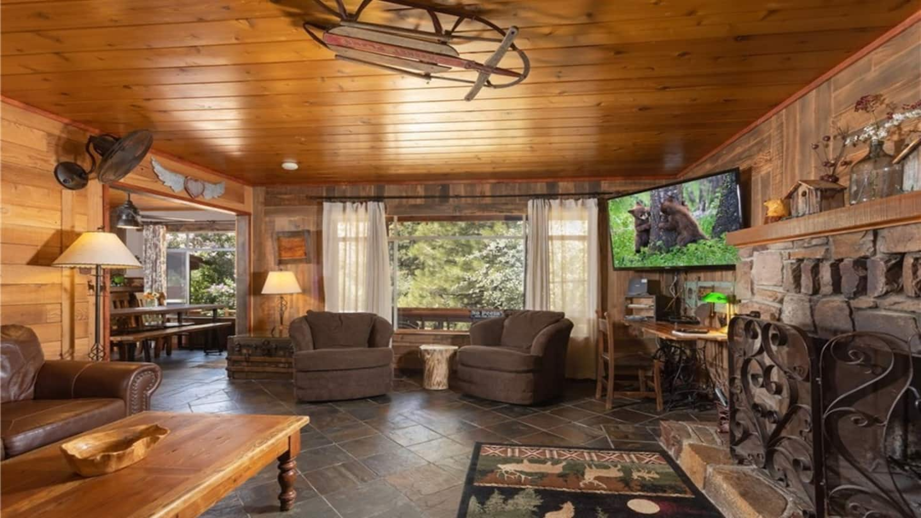 Step inside this haven and be greeted by reclaimed Old Growth Douglas Fir walls, cozy slate floors, and custom furnishings that reflect the rich character of the mountains. Whether you're relaxing by the wood-burning stone fireplace, soaking in the outdoor spa, or cooking up a storm in the fully equipped kitchen, you'll feel right at home.