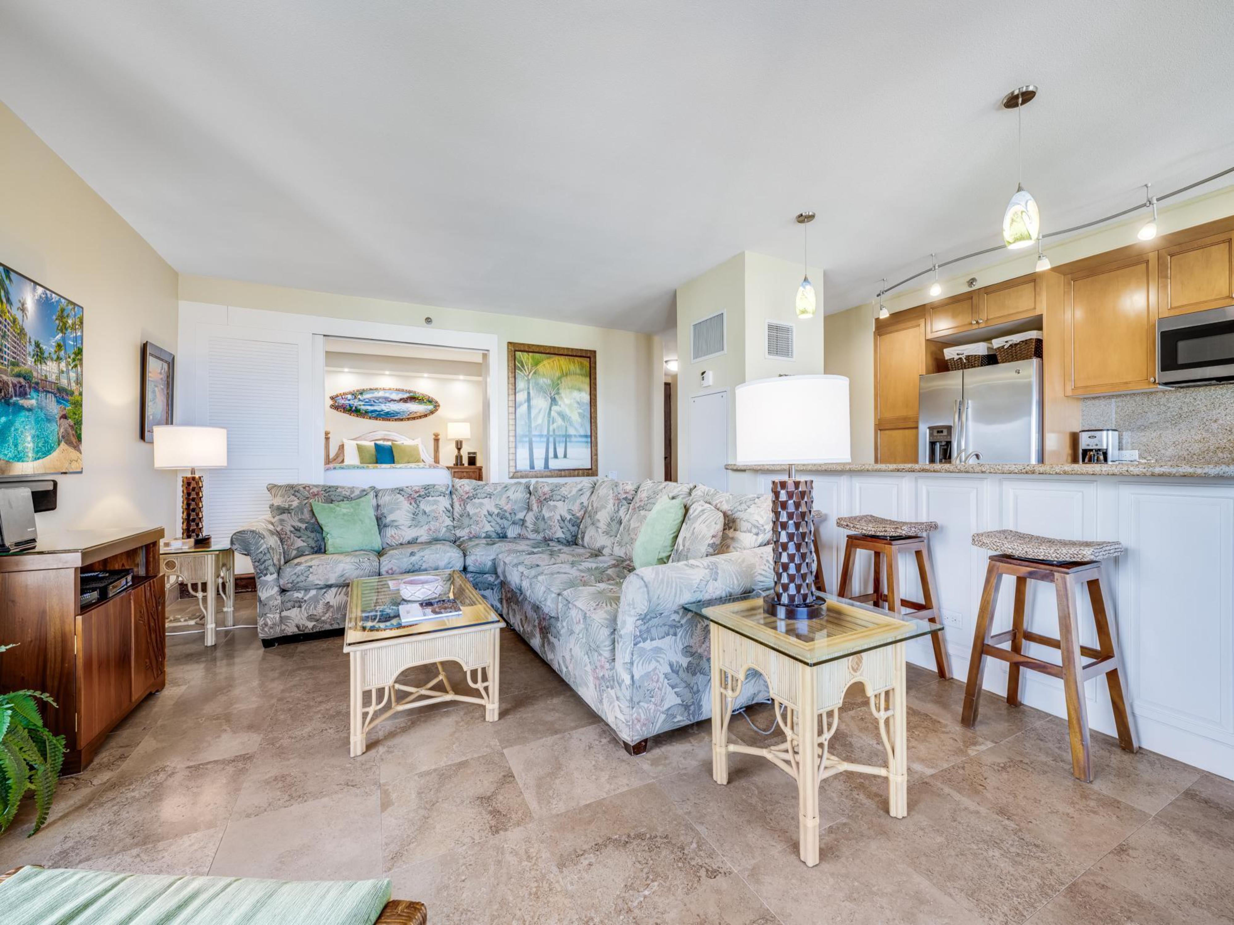 Discover the perfect blend of comfort and island-inspired style in this one-bedroom partial ocean view residence with a fully enclosed den that comfortably serves as a second bedroom. This beautifully designed space accommodates up to four guests, making it ideal for couples or small families.