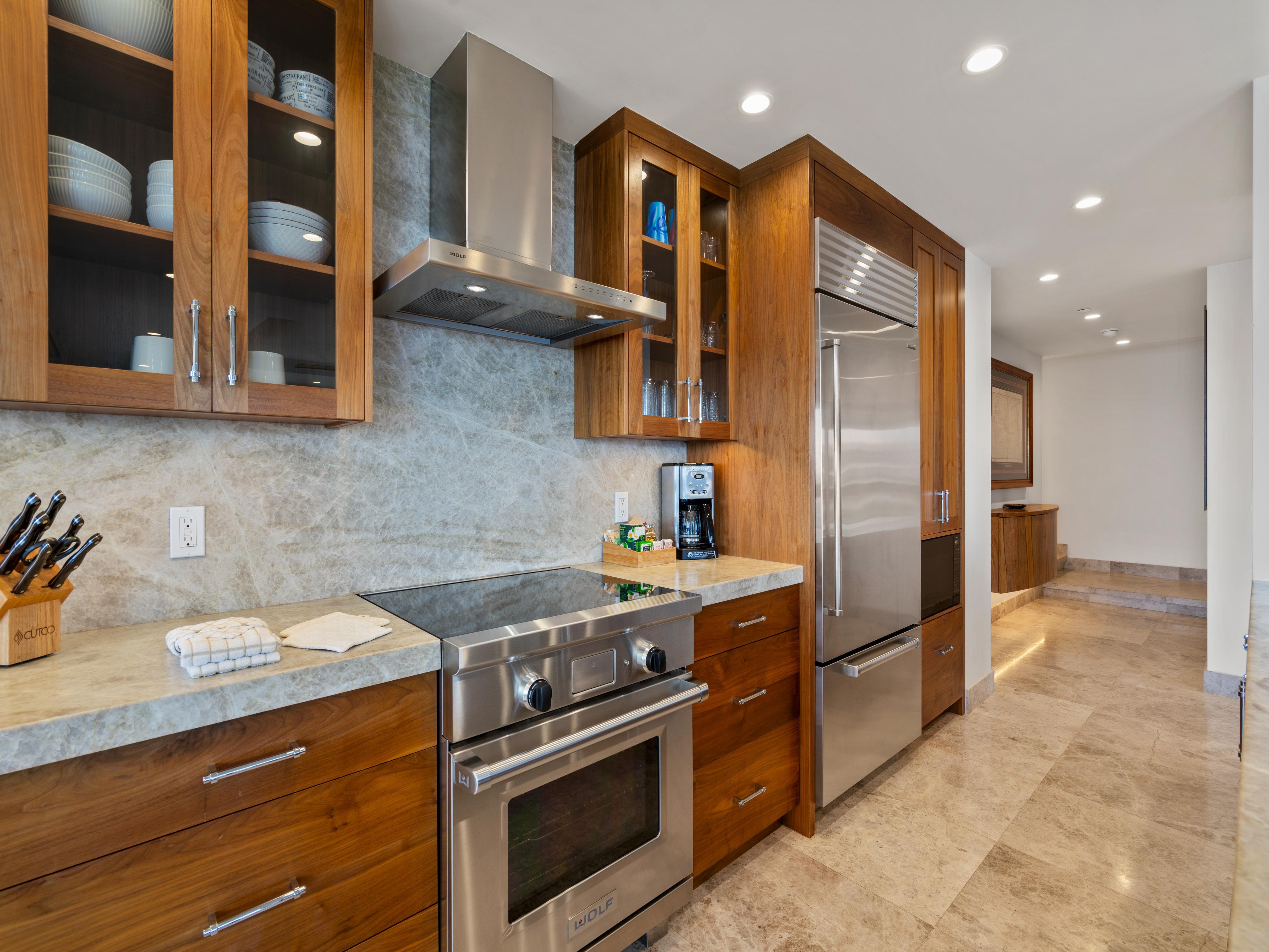 The stunning ocean views extend into the primary bedroom, where you can rise each morning from your comfortable California King bed and check the surf report from your pillow! The second bedroom which features two double beds also enjoys ocean views. If looking for a vacation rental on Maui with ocean views, look no further, as almost every room in this 1,845 square foot residence is designed to pull in the close proximity of the coastline and ocean.