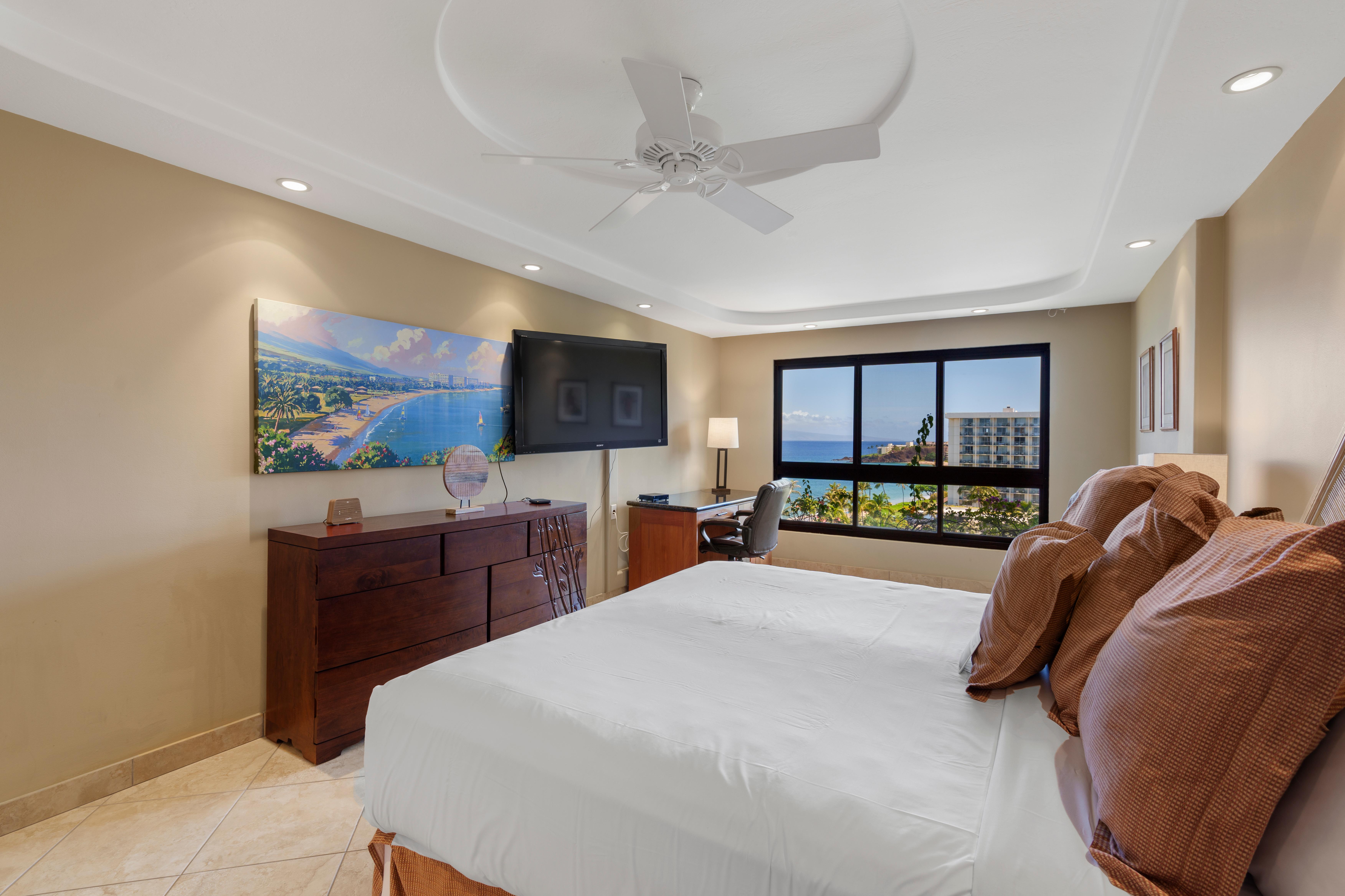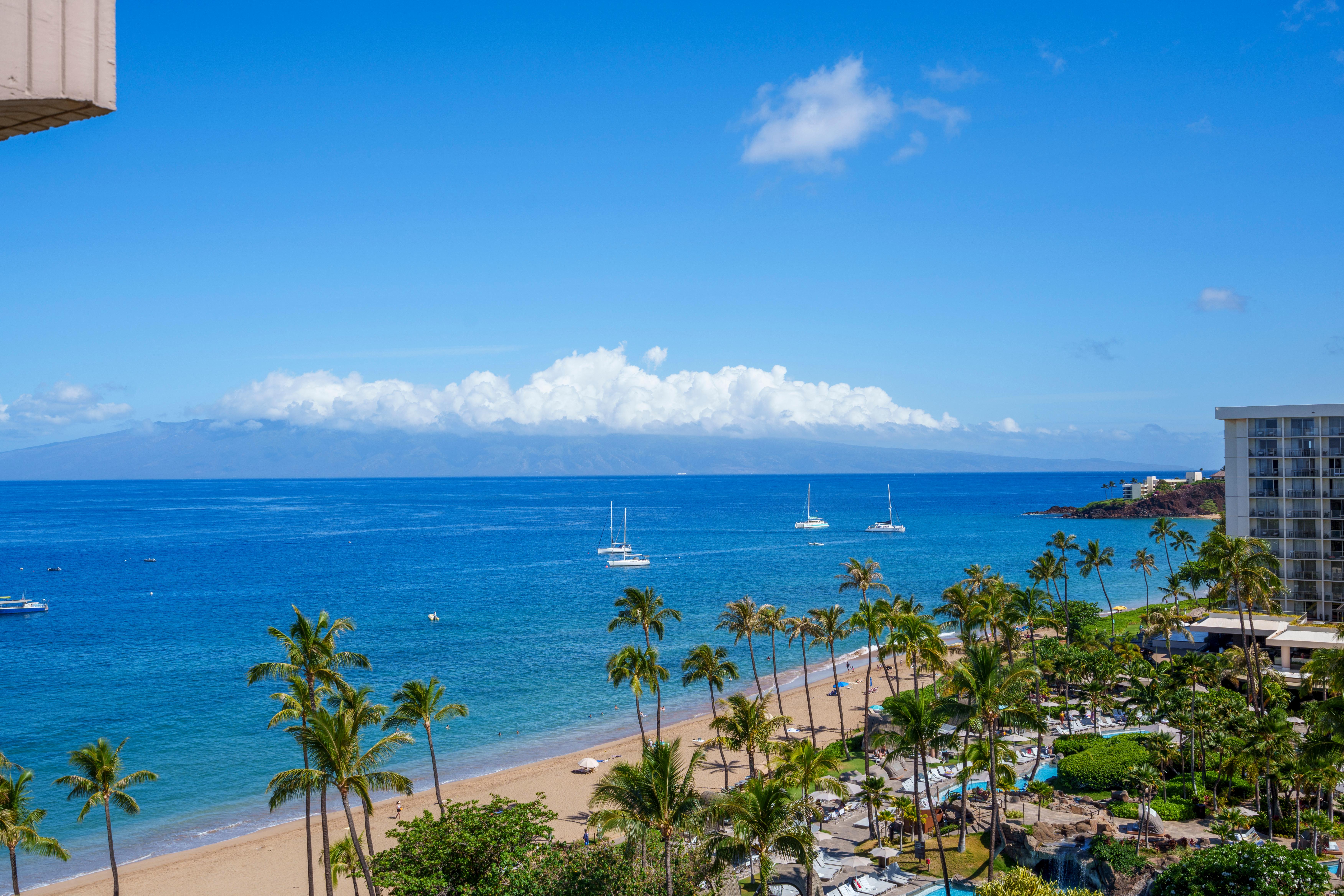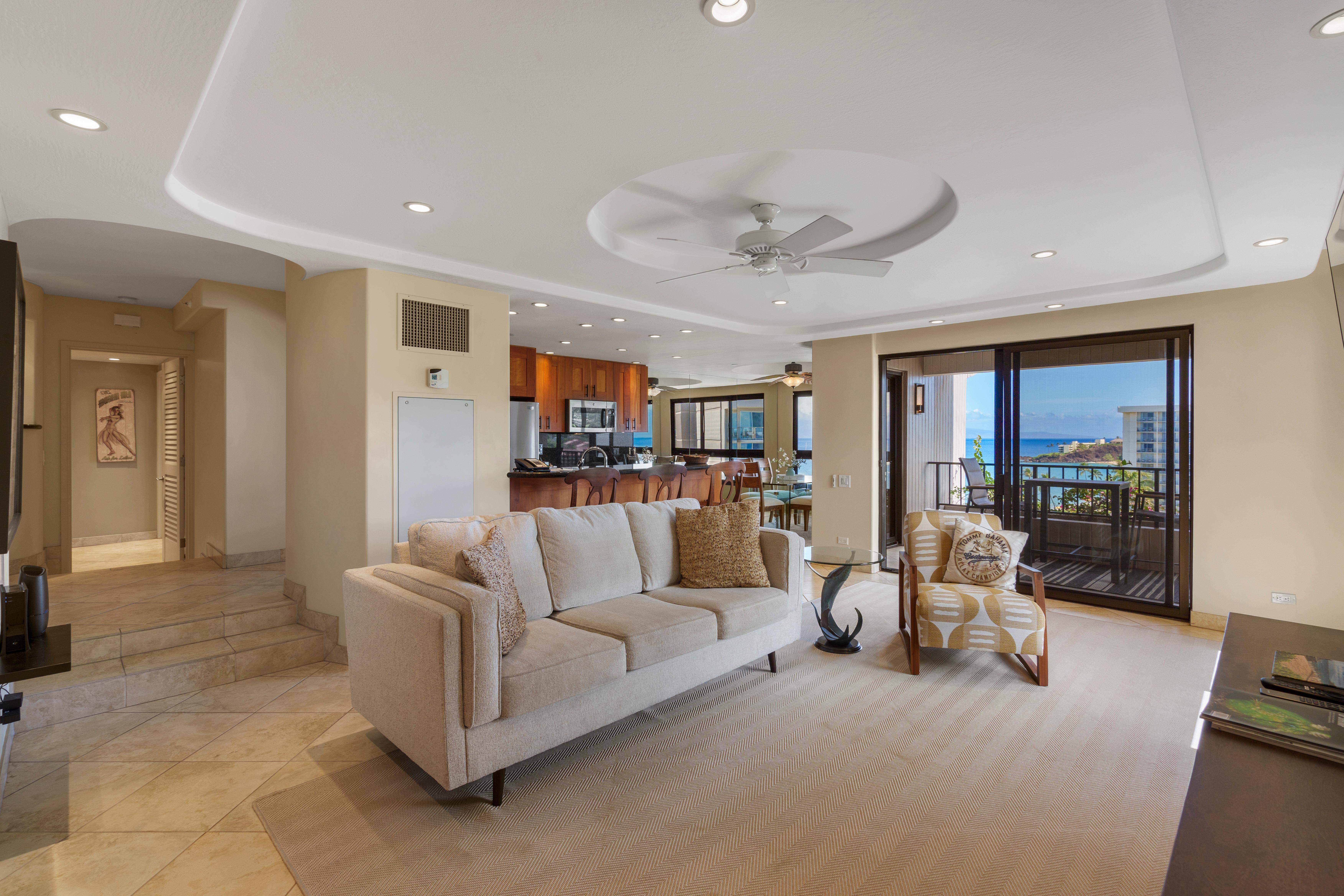 The spacious lanai is an outdoor sanctuary where you can take in the vibrant sunsets, watch sailboats drift across the horizon, or simply relax to the sound of swaying palms. From here, the West Maui Mountains and sweeping coastline unfold in breathtaking detail, immersing you in the island’s natural beauty.
