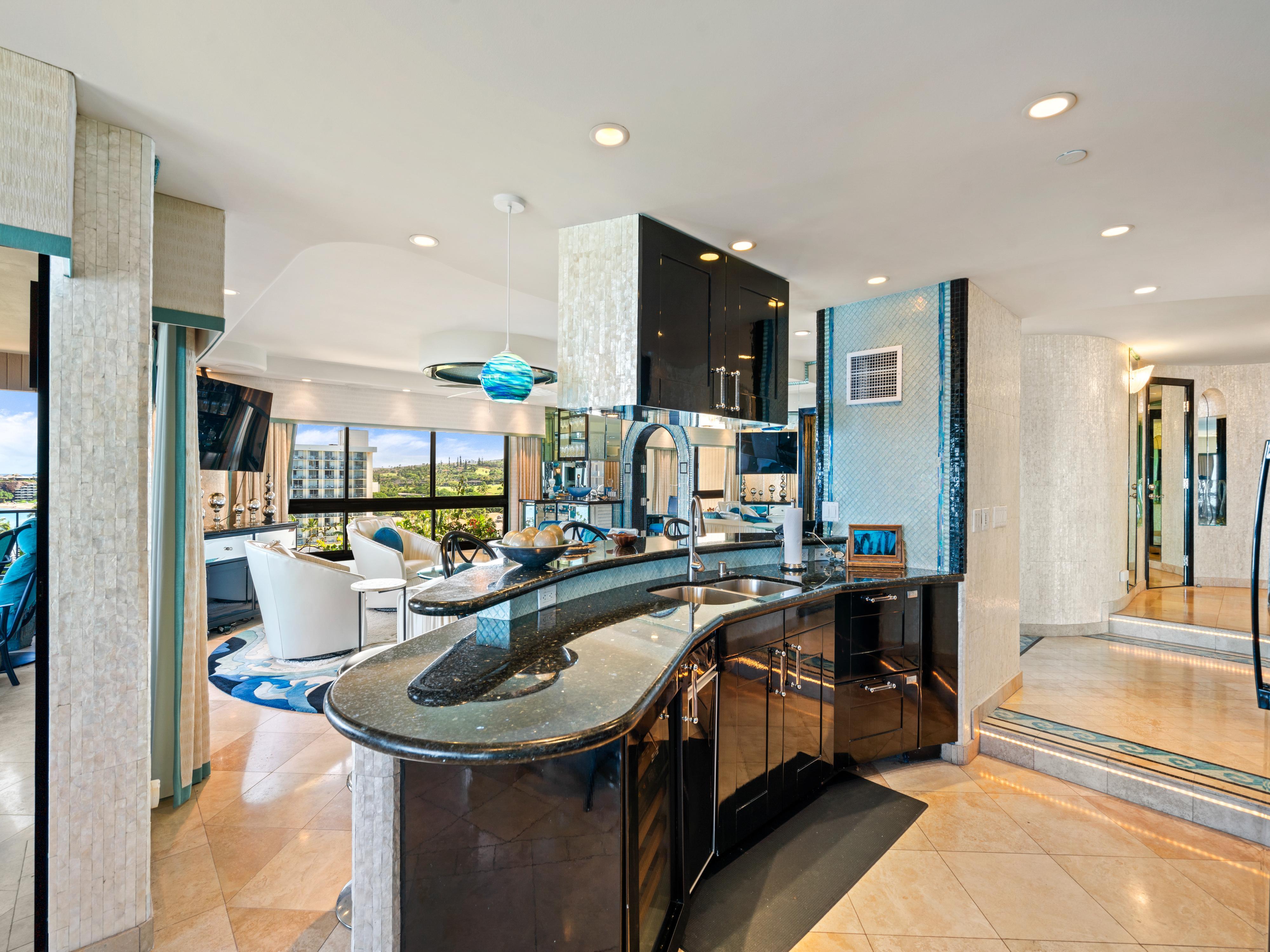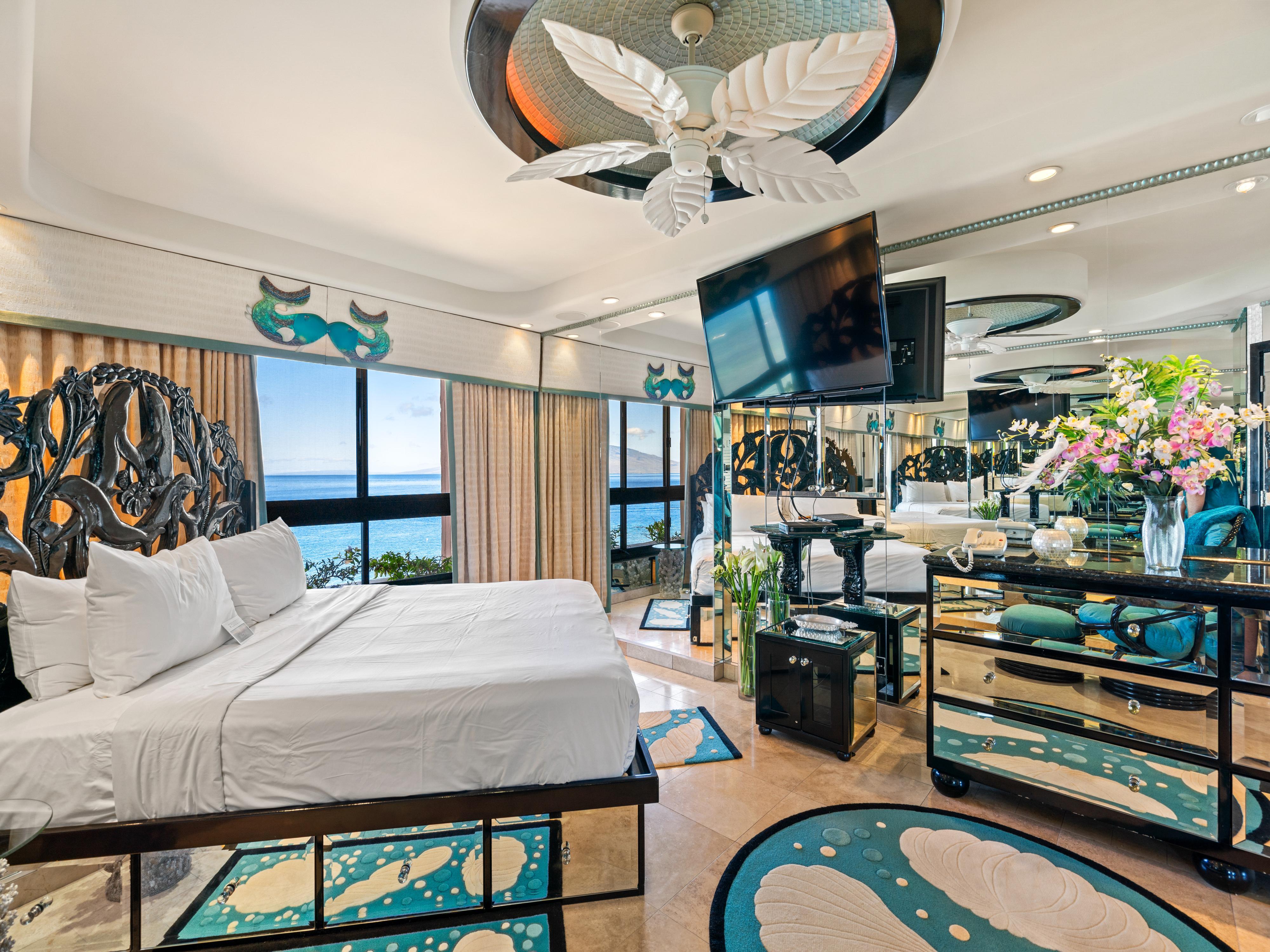 Inside, the decor plunges you into a vibrant underwater world. Bright blue accents, sleek modern furnishings, and ocean-inspired design elements make you feel as if you are swimming alongside tropical fish and coral reefs. Expansive, airy living spaces let you relax, entertain, or simply soak in the sea breeze while feeling completely immersed in Maui’s marine magic.